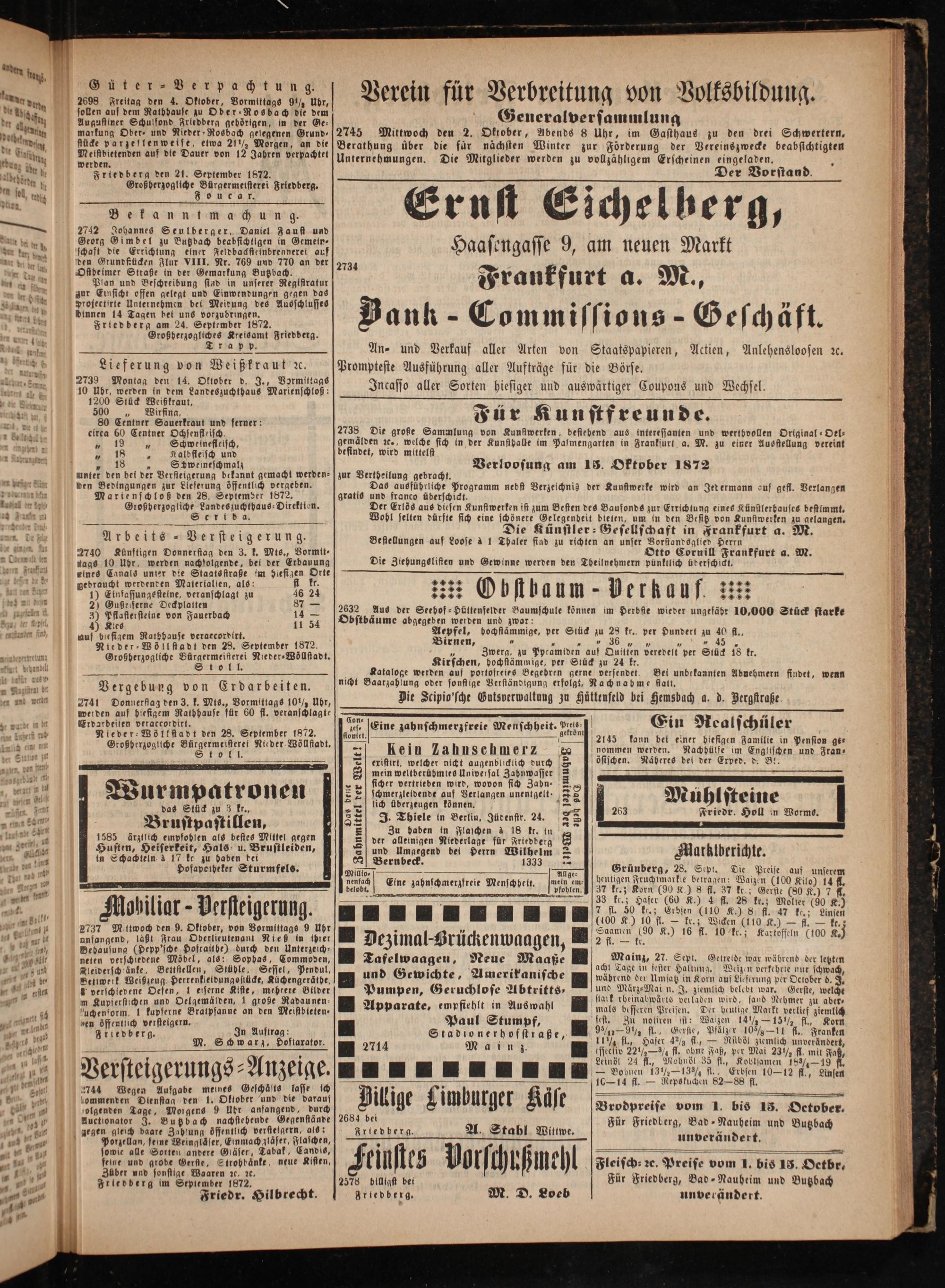 muf biesigem Ratbhause veraccordirt. Nieder⸗Wöllstadt den 28. September 1872. Großherzogliche Bürgermeifterei Nieder⸗Wöllstadt. Stoll.
