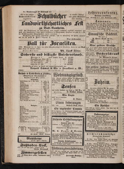 Vorschus-& Credit-Vertin zu Friedberg. W̃᷑ ohnungsgesuch.