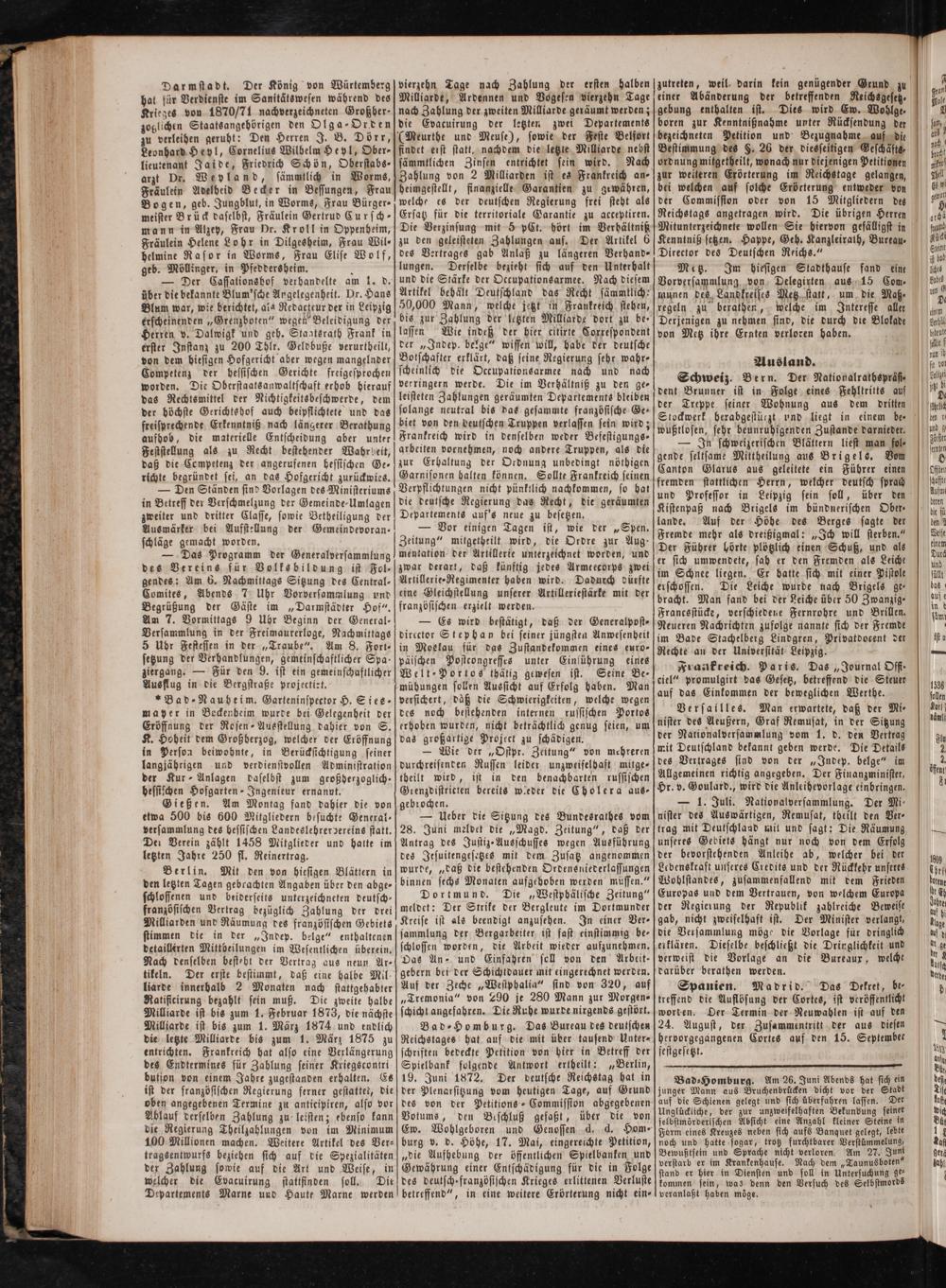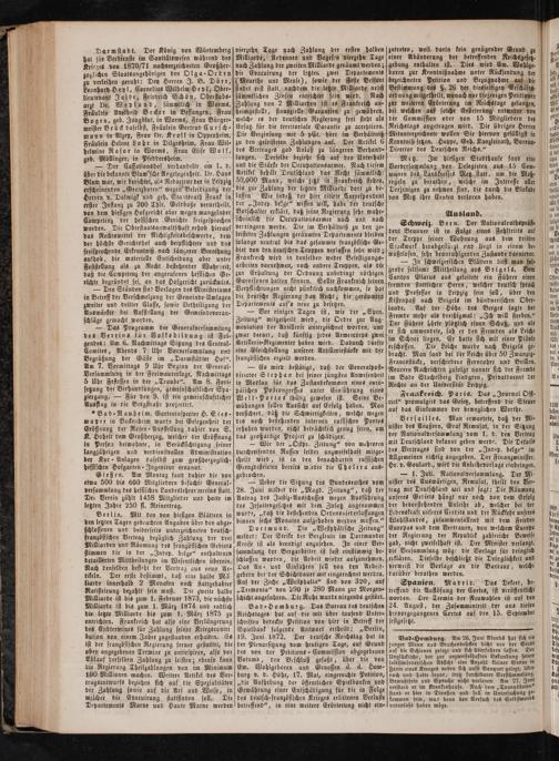 Ausland. Schweiz. Bern. Der Nationalrathepräf⸗ dent Brunner ist in Folge eines Fehltritts auf der Treppe seiner Wohnung aus dem dritten