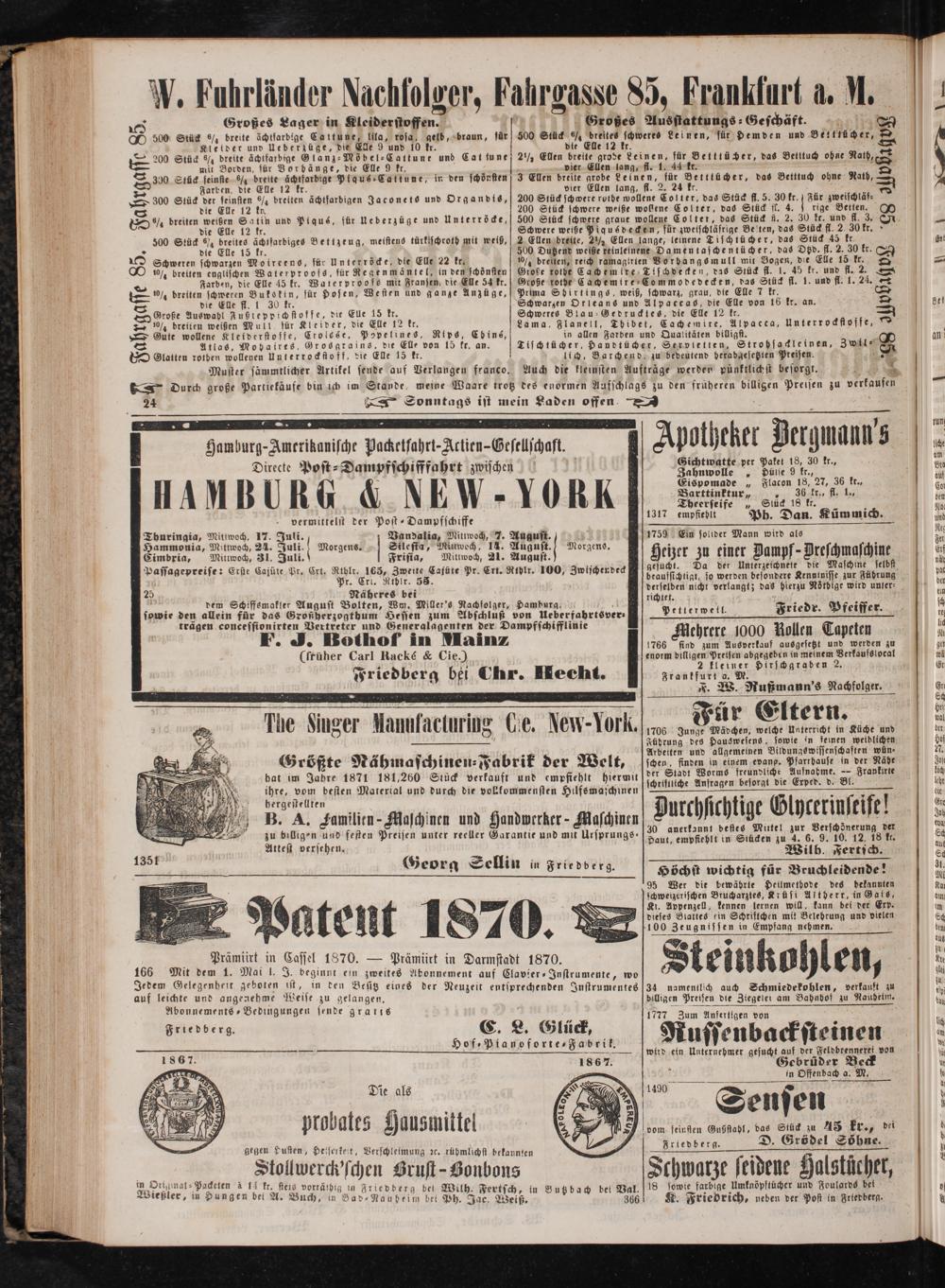 daurch große Partiekäufe bin ich im Stande, meine Waare trotz des enormen Aufschlags zu den früheren billigen Preisen zu verkaufen 24— Sonntags ist mein Laden offen 76
