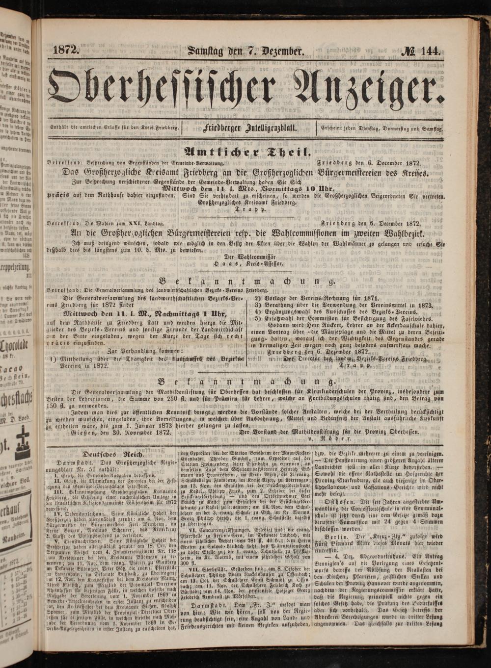 Friedberg den 6. December 1872.