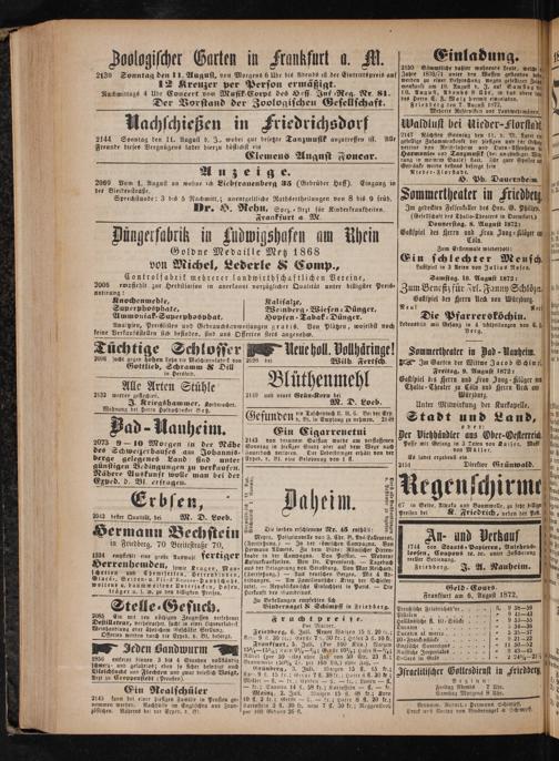 Geld Cours. 1 N Frankfurt am 6. August 1872. 0
