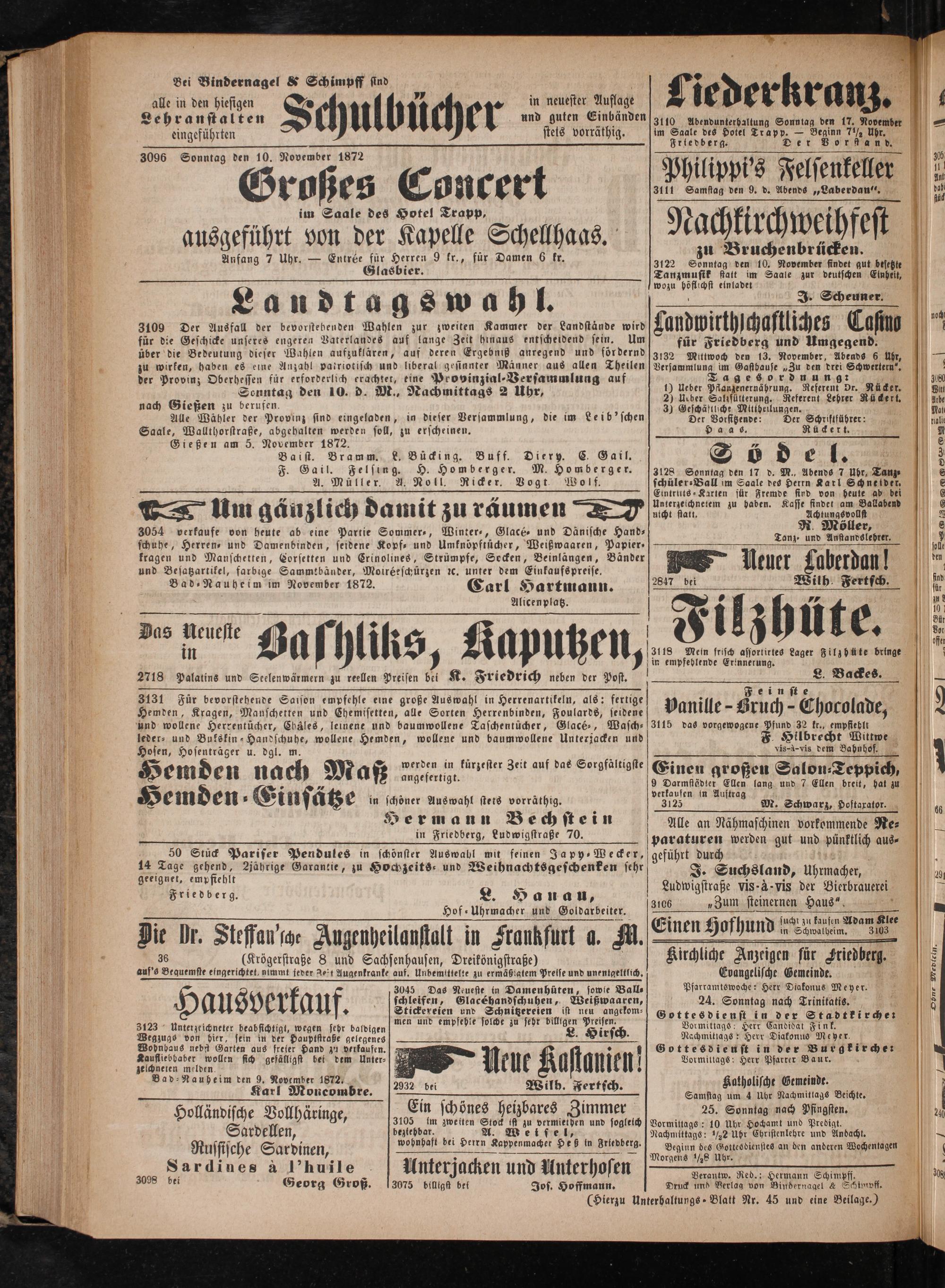 Bad⸗ Nauheim den 9. November 1872. 2032 bei Wilb. Fertsch.