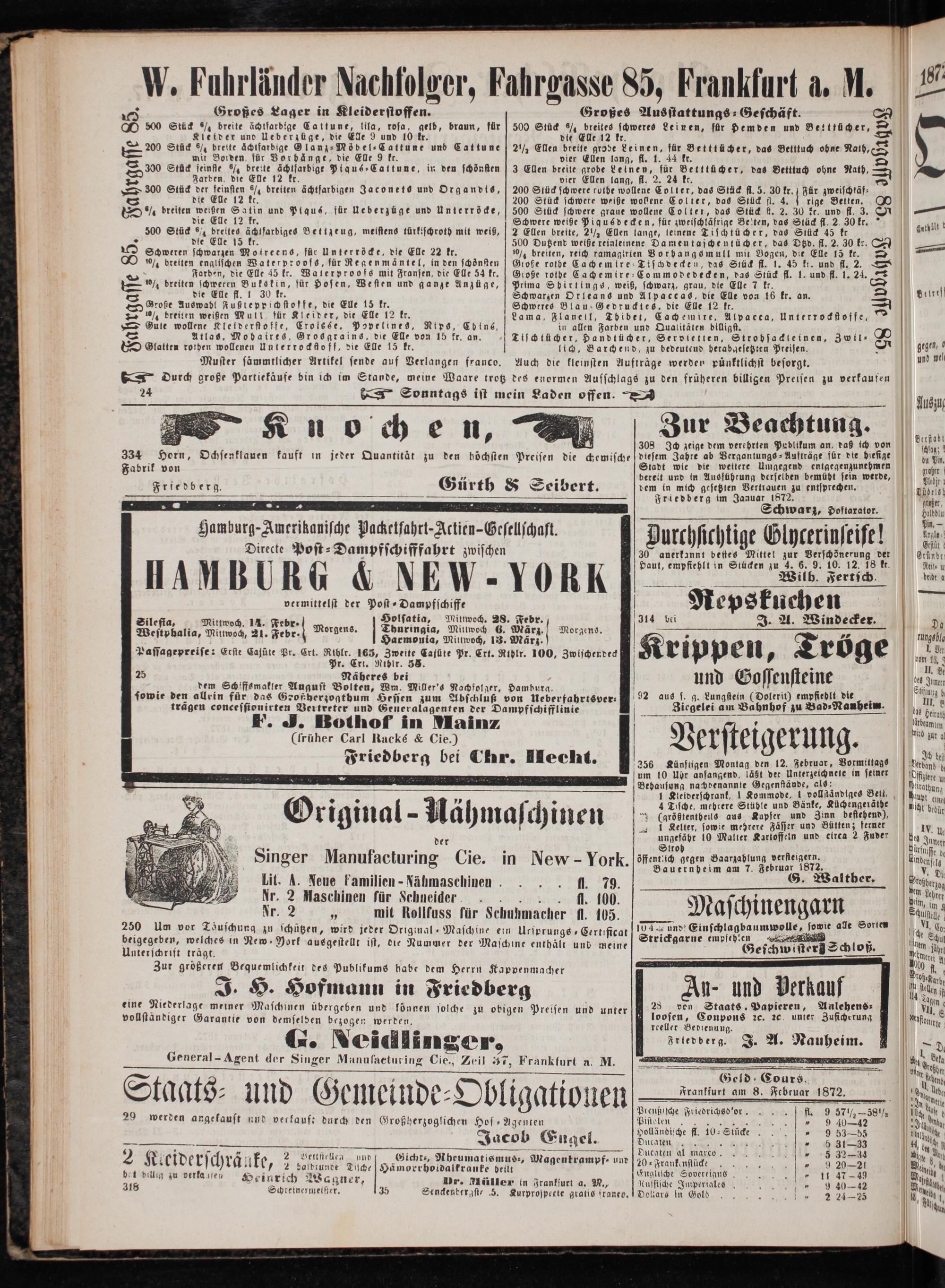 Geld Cours. Frankfurt am 8. Februar 1872.