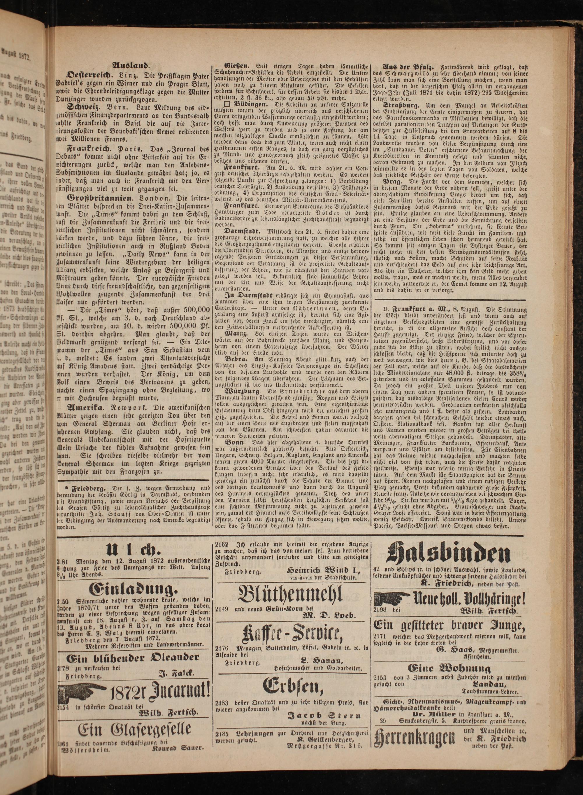 Zuspruch. 1 5 Friedberg. Heinrich Wind l., vis-à-vis der Stadtschule.