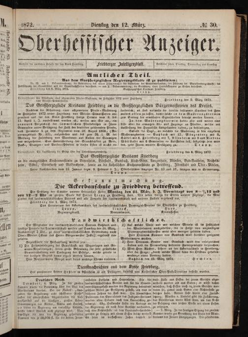Entbslt die amtlichen Erlasse für den Kreis Friedberg. Friedberger utelligenzblatt.