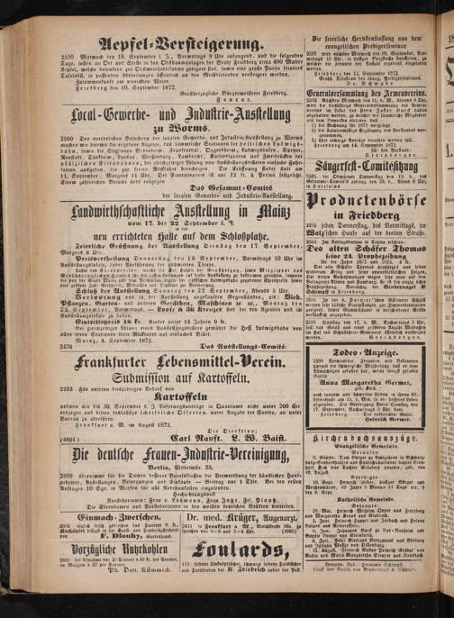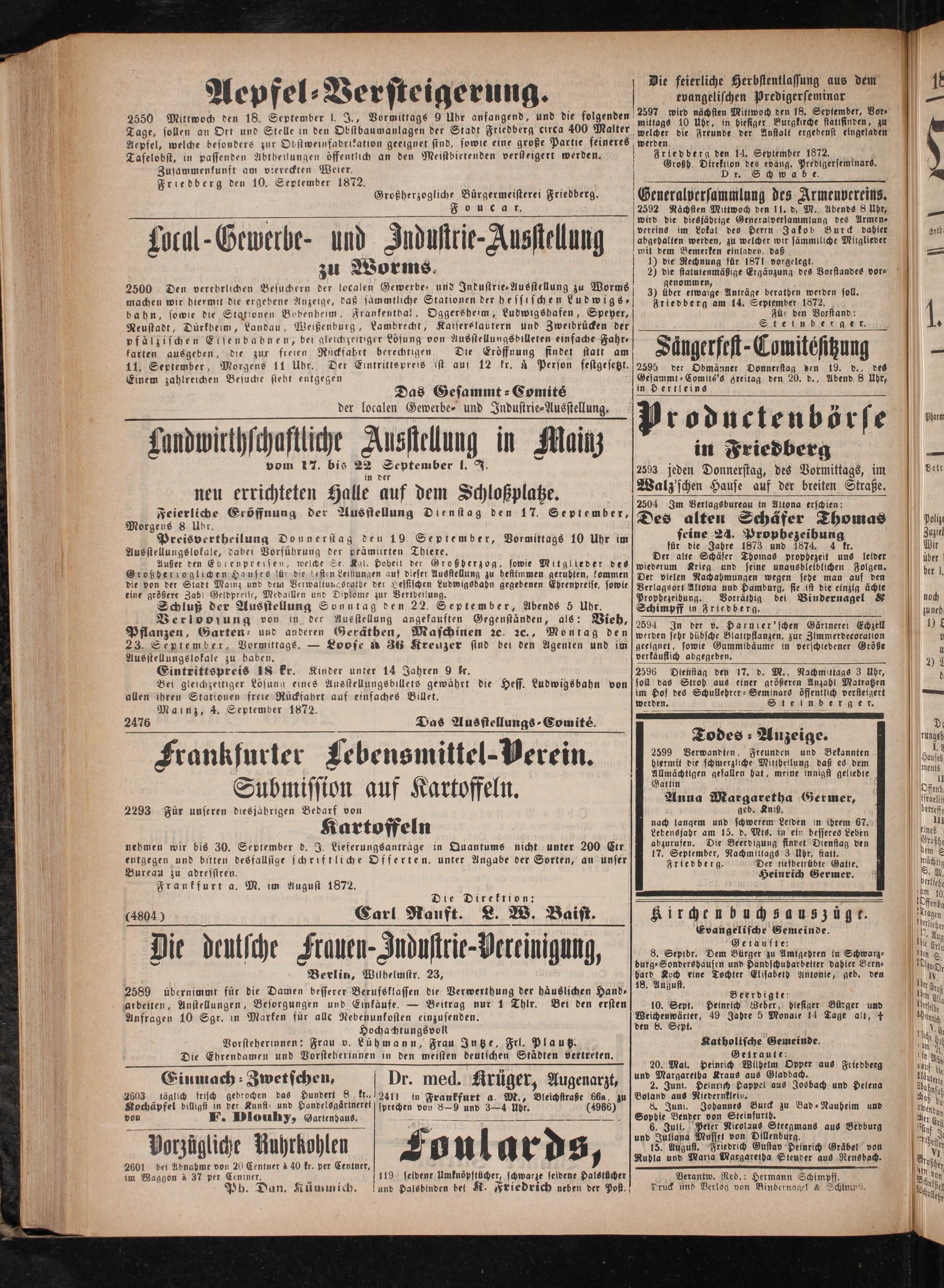 genommen, b 3) über etwaige Anträge berathen werden soll. Friedberg am 14. September 1872. Für den Vorstand: Steinberger.