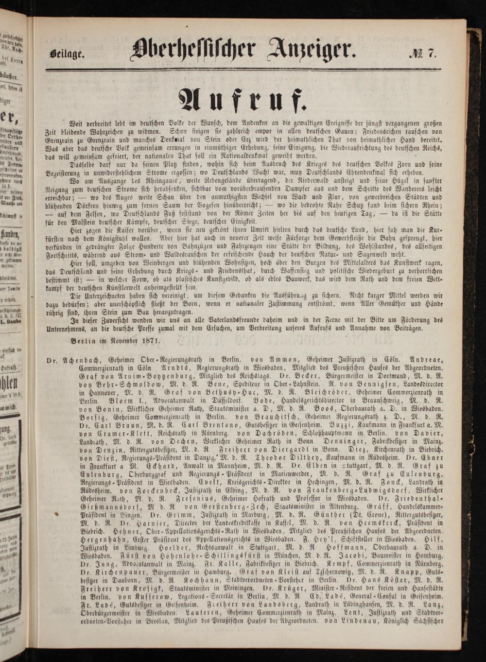 ale, Oberhessischer Anzeiger. n: Aufruf.