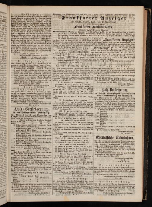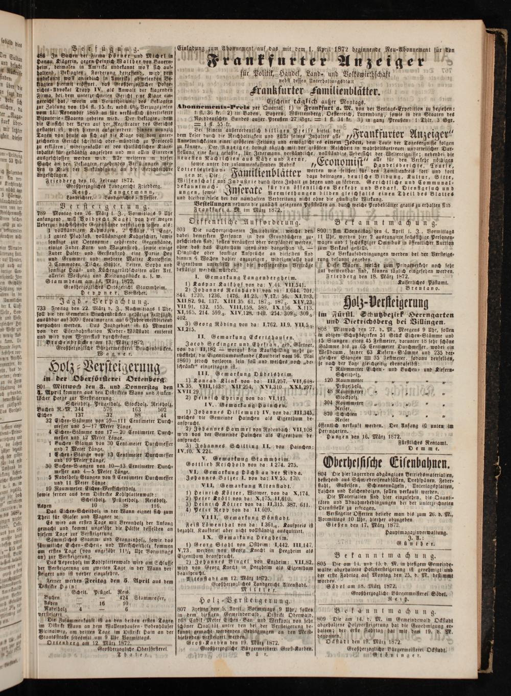 Hungen den 16. März 1872. Fürstliches Rentamt. De mme.