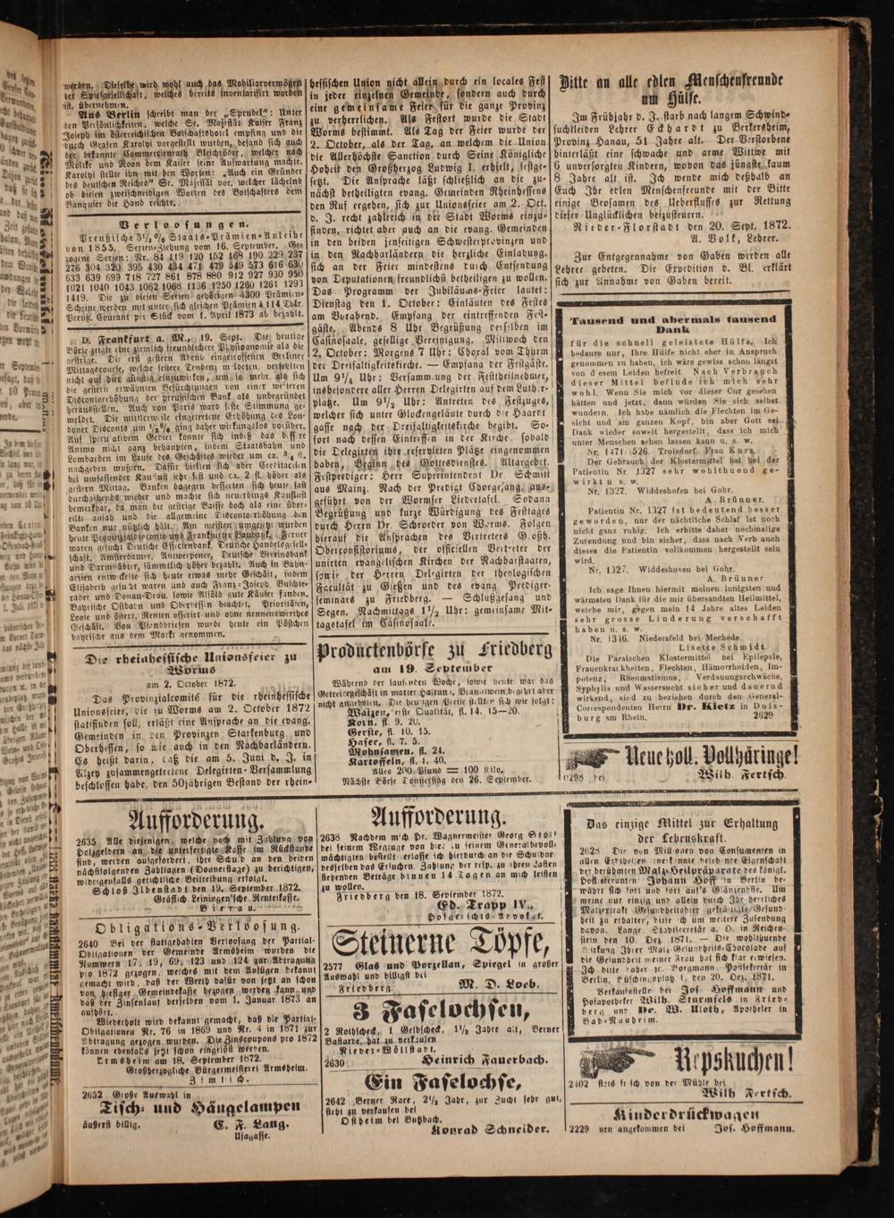zu wollen. ö Friedberg den 18. September 1872. ö ö
