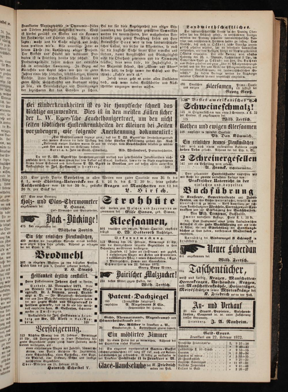 Geld Cours. Frankfurt am 22. Februar 1872.