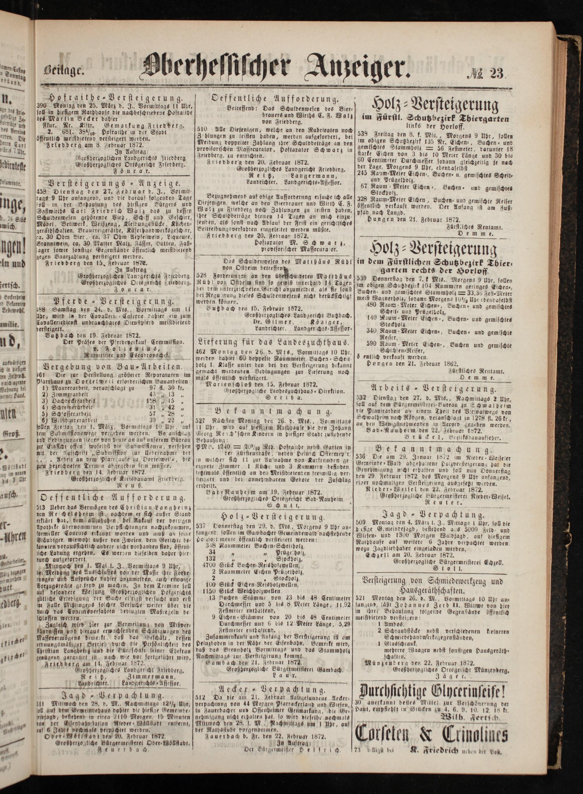Friedberg den 20. Februar 1872. Großberzogliches Landgericht Frtedberg.