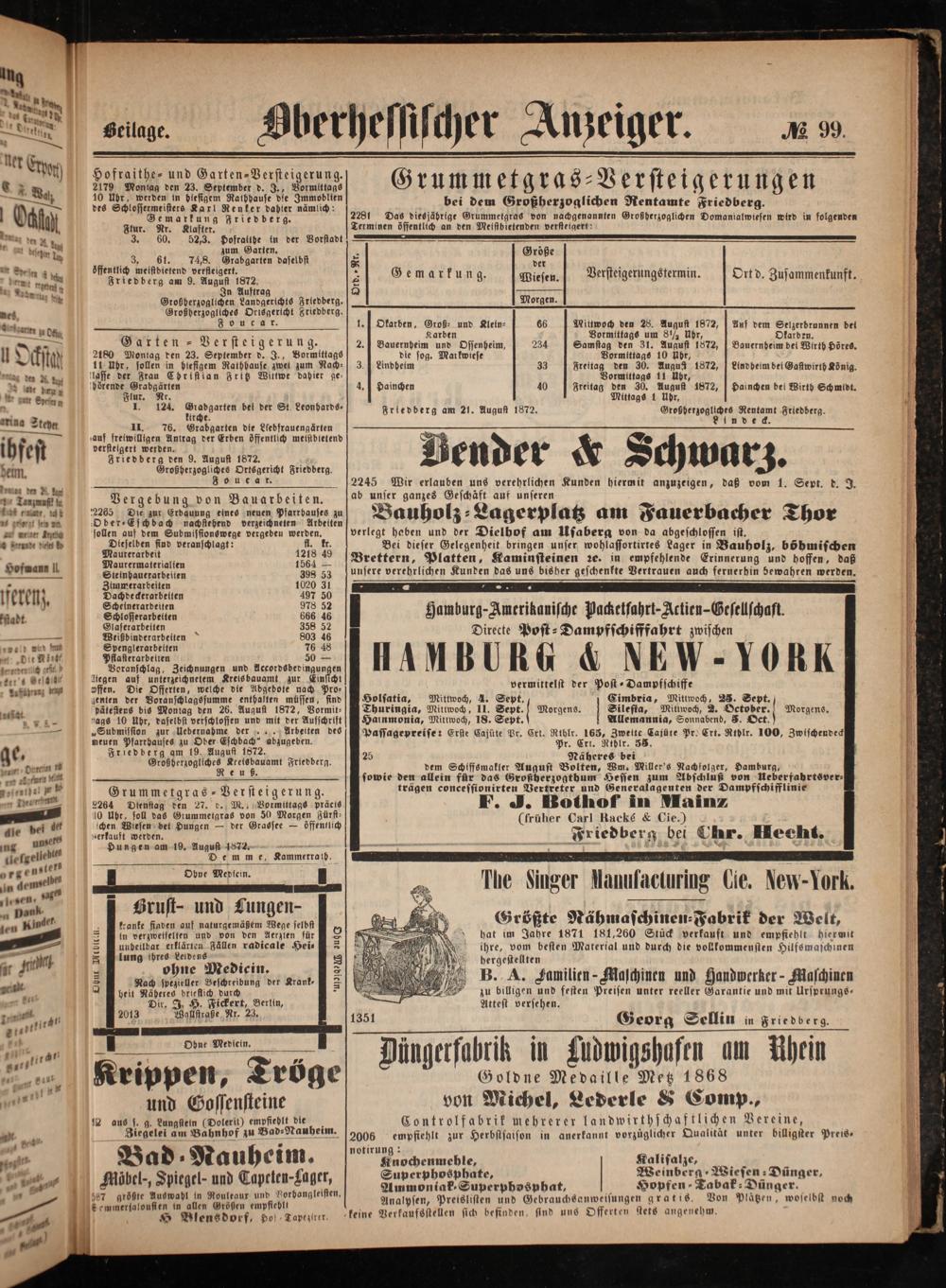 Friedberg den 9. August 1872. Großherzogliches Ortsgericht Friedberg. Foucar.