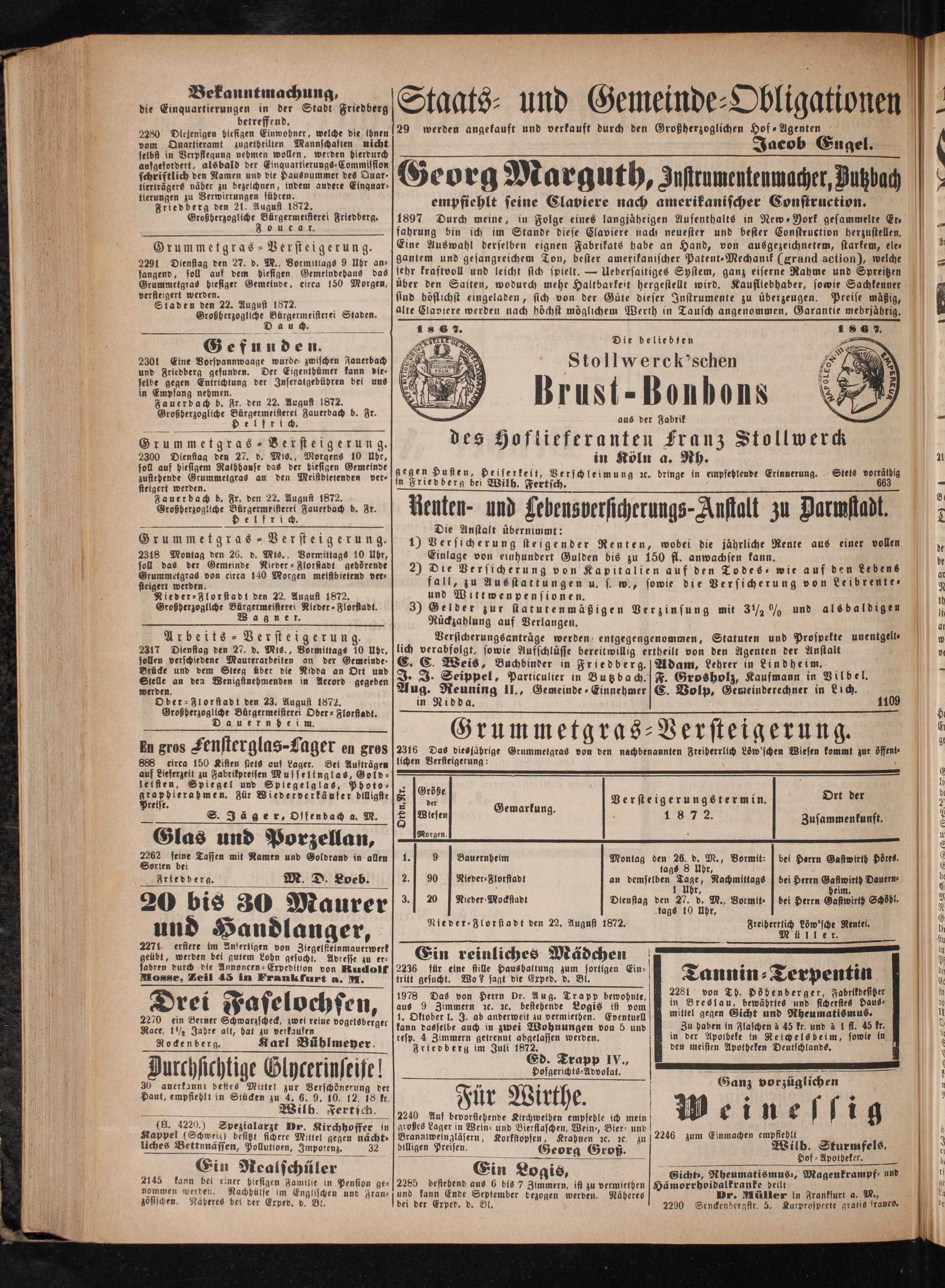 Ober⸗Florstadt den 23. August 1872.