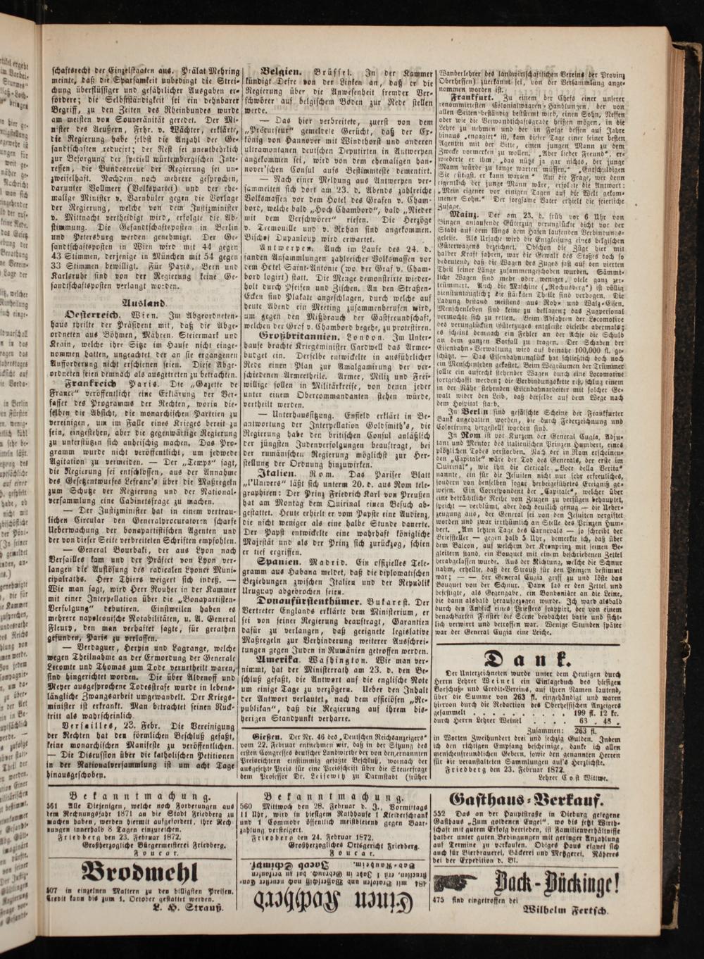 Friedberg den 23. Februar 1872. Großherzogliche Bürgermeisterei Frledberg.
