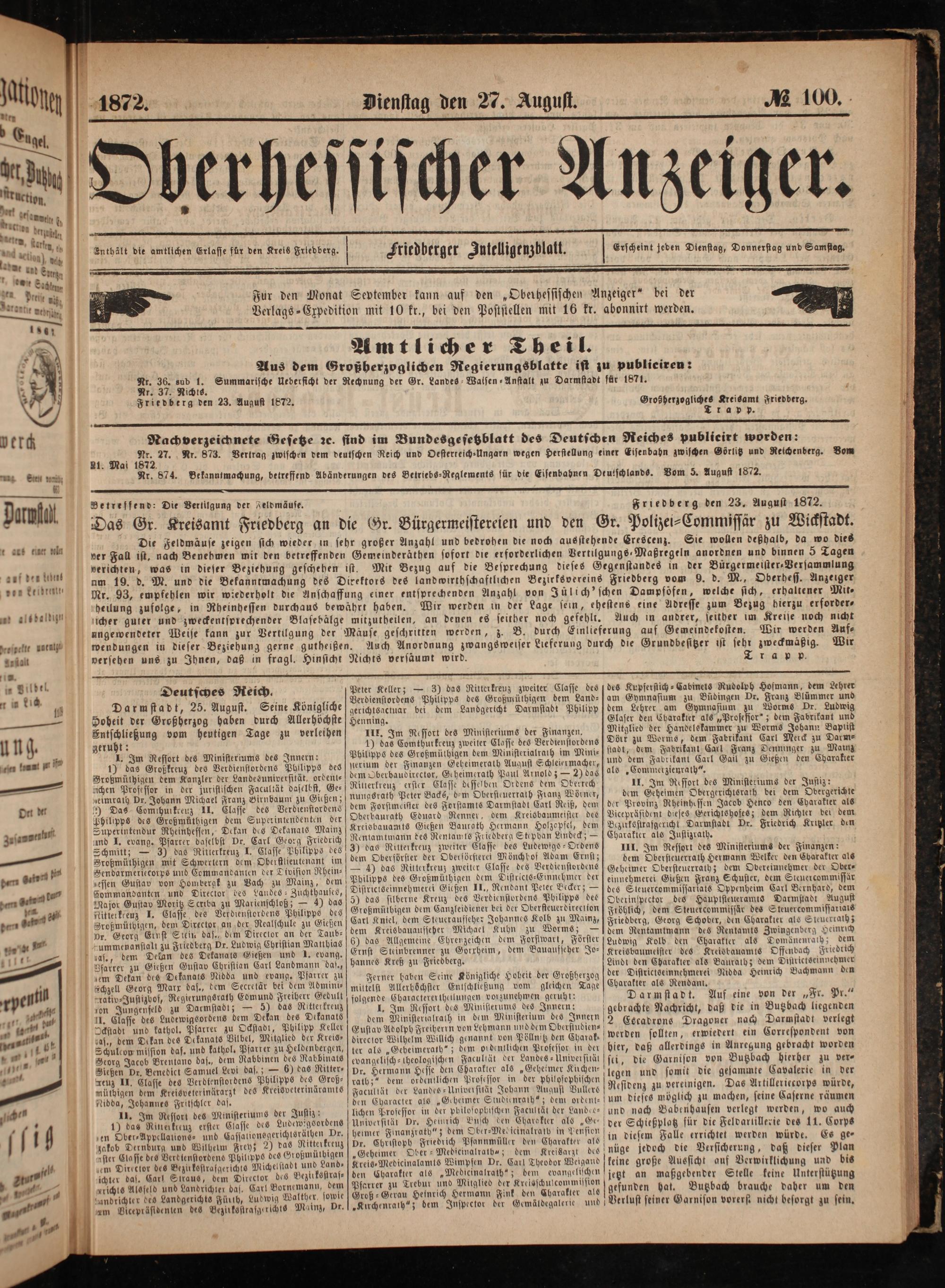 Nr. 37. Nichts. Friedberg den 23. August 1872.