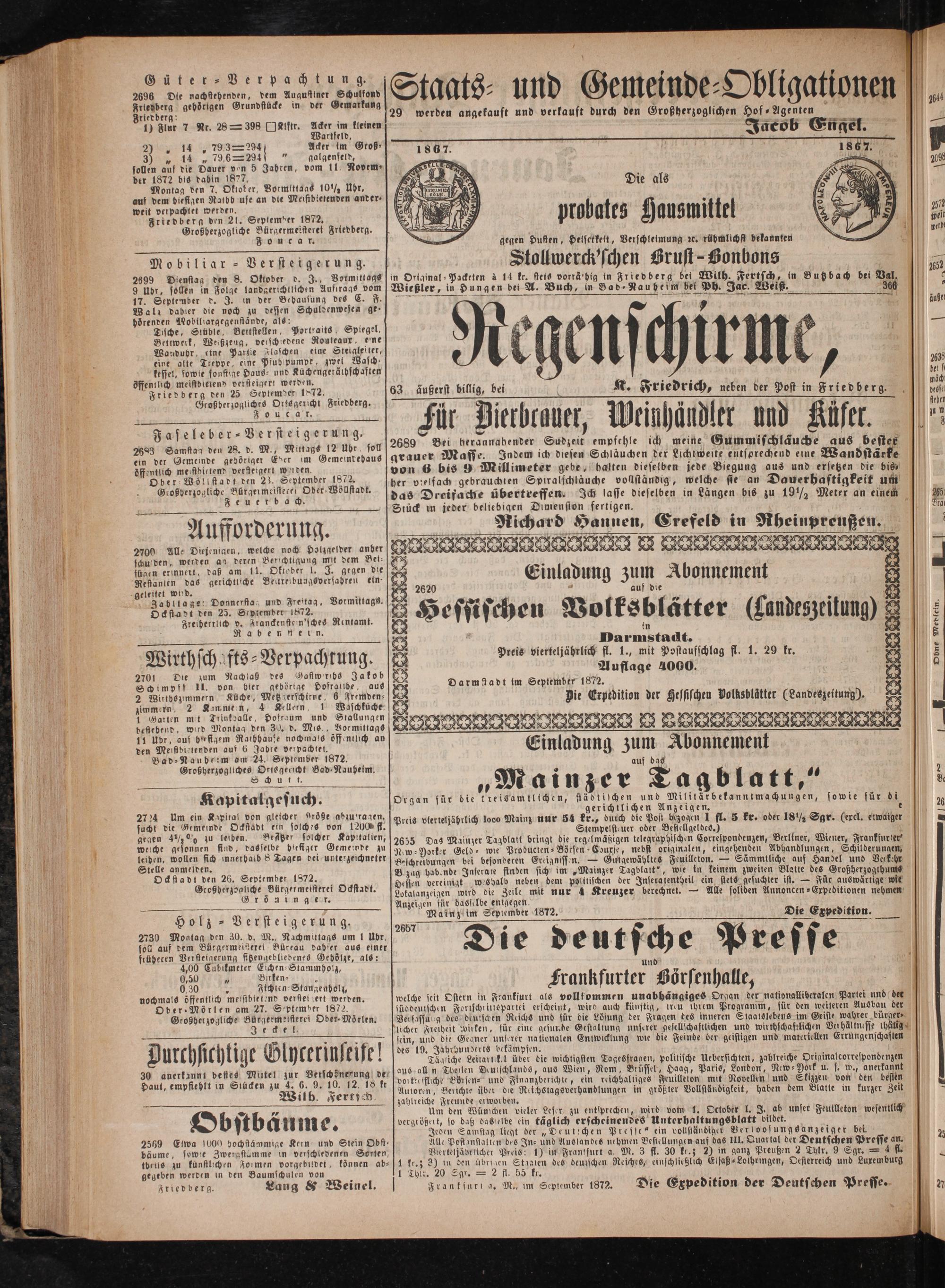 Friedberg den 21. Seplember 1872.
