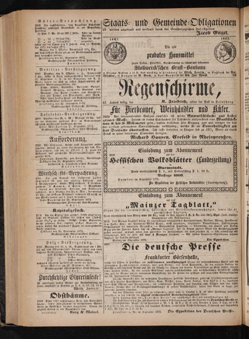 Anzeigen für dasselbe entgegen. Mainz im September 1872. Die Expedition.