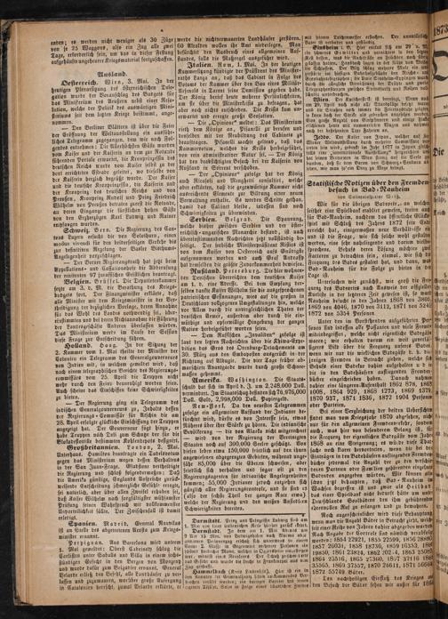 bücher jedeemal die Anzahl der zu den verschie senient denen Parteien oder Famelien gebörenden einzelnen Badenden angegeben würden. Wir können alses ech schon jetzt behaupten, daß Bad Naubeim im g Wachsen begriffen ist und zwar als Heilbad das einer Spielbank nicht bedurft bätte um unte Deuischlands Soolbädern den ihm gebührenden ehrenvollen Ruf zu erlangen und zu bewahren. im di Noch augenscheinlicher wird diese Behauptung wenn man die Anzabl Bäder in Betracht zieht, welch hir a seit einer Reihe von Jahren dahier abgegeben wurden Nach Angabe der Controle sind nämlich verabfolg worden: 1854 22921, 1855 22599, 1856 28880 1857 26031, 1858 18736, 1859 16353, 1800%/ 19850, 1861 23824, 1862 2024, 1863 25089 10 1864 23516, 1805 27300, 1807 32116 180 cho 35565, 1869 37557, 1870 26611, 1871 5660 ff iges 1872 55749 Bäder. He, Den nachtheiligen Einfluß des Krieges au den Besuch der Bäder sehen wir außer für 18600