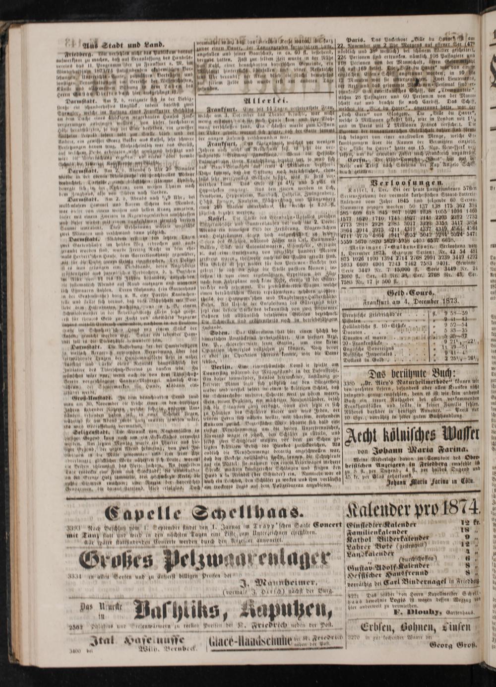Geld Cours, Frankfurt am 4, December 1873.