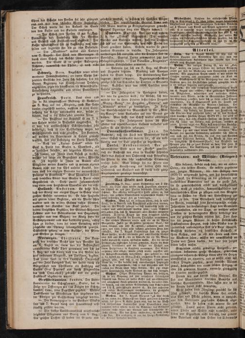 — Der Schah von Persien ist am 8. Aag. Vormiliags von Laxenburg über den Brenner und Brindisi nach Konstantinopel abgereist. Der Kaiser vetabschiedele sich in Laxenburg von dem ⸗ selben und begleitete ihn bis zu dem Bahnhofe.
