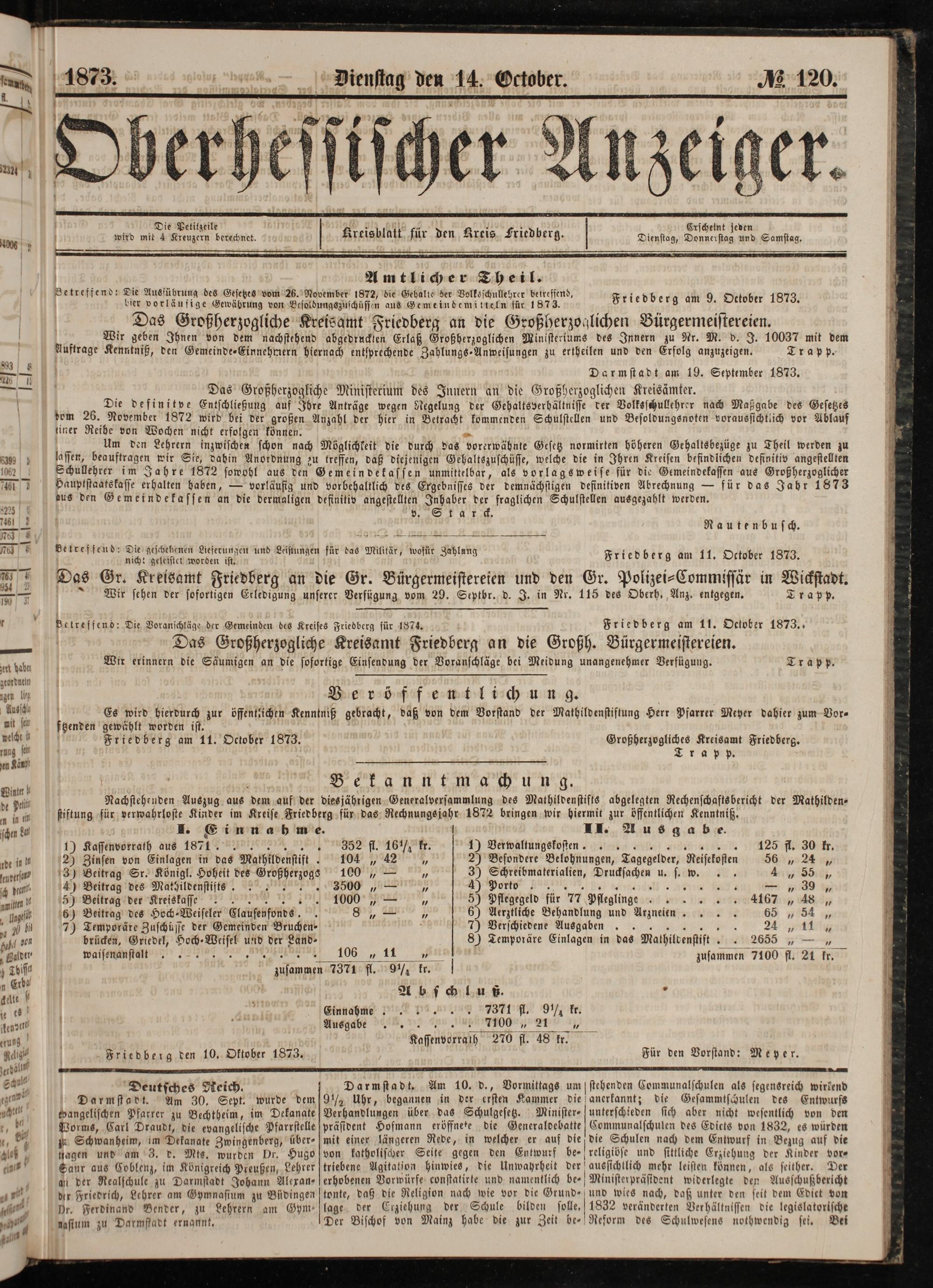 Friedberg den 10. Oktober 1873.