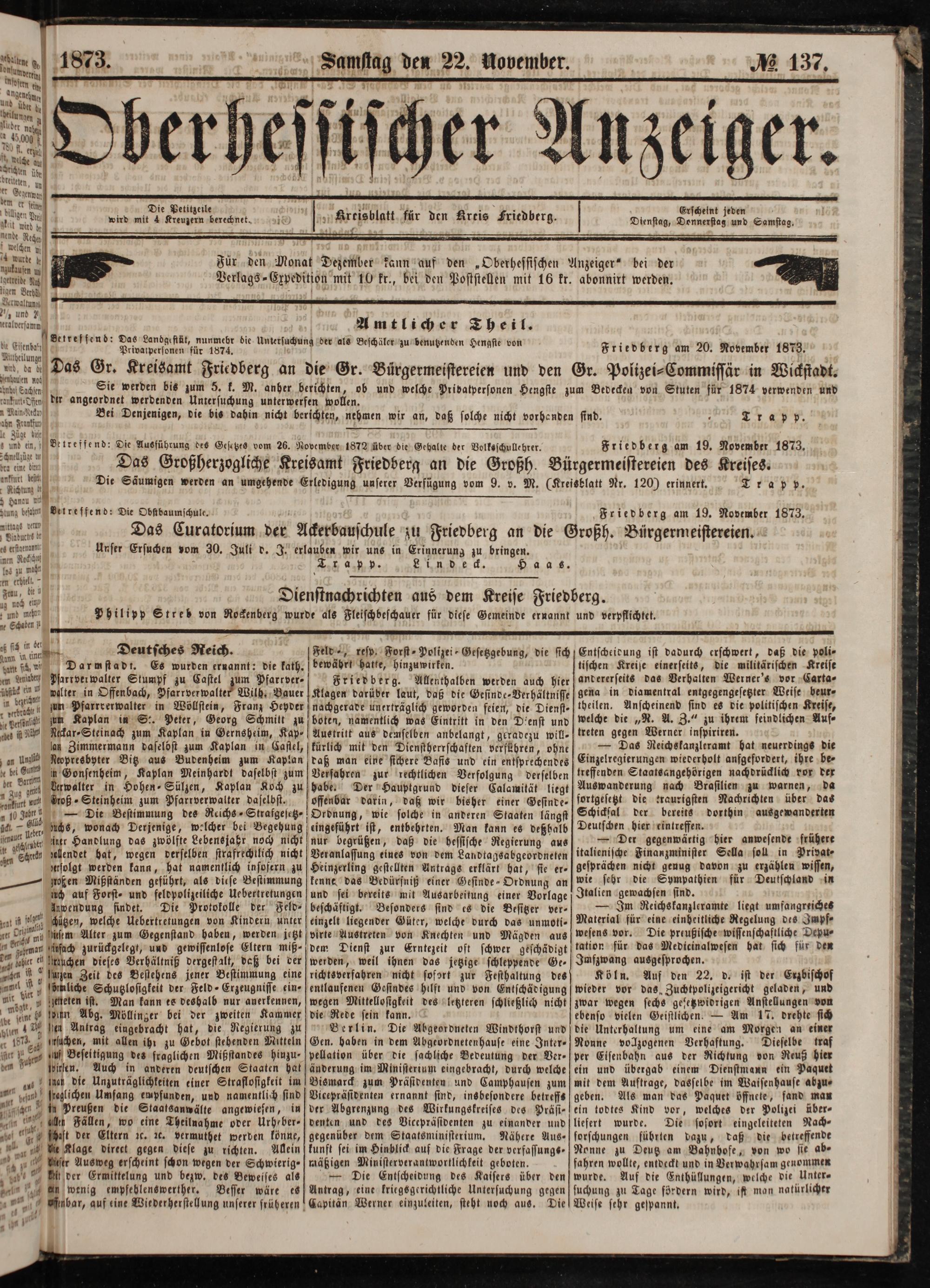 Privalpersonen für 1874. Friedberg am 20. November 1873.