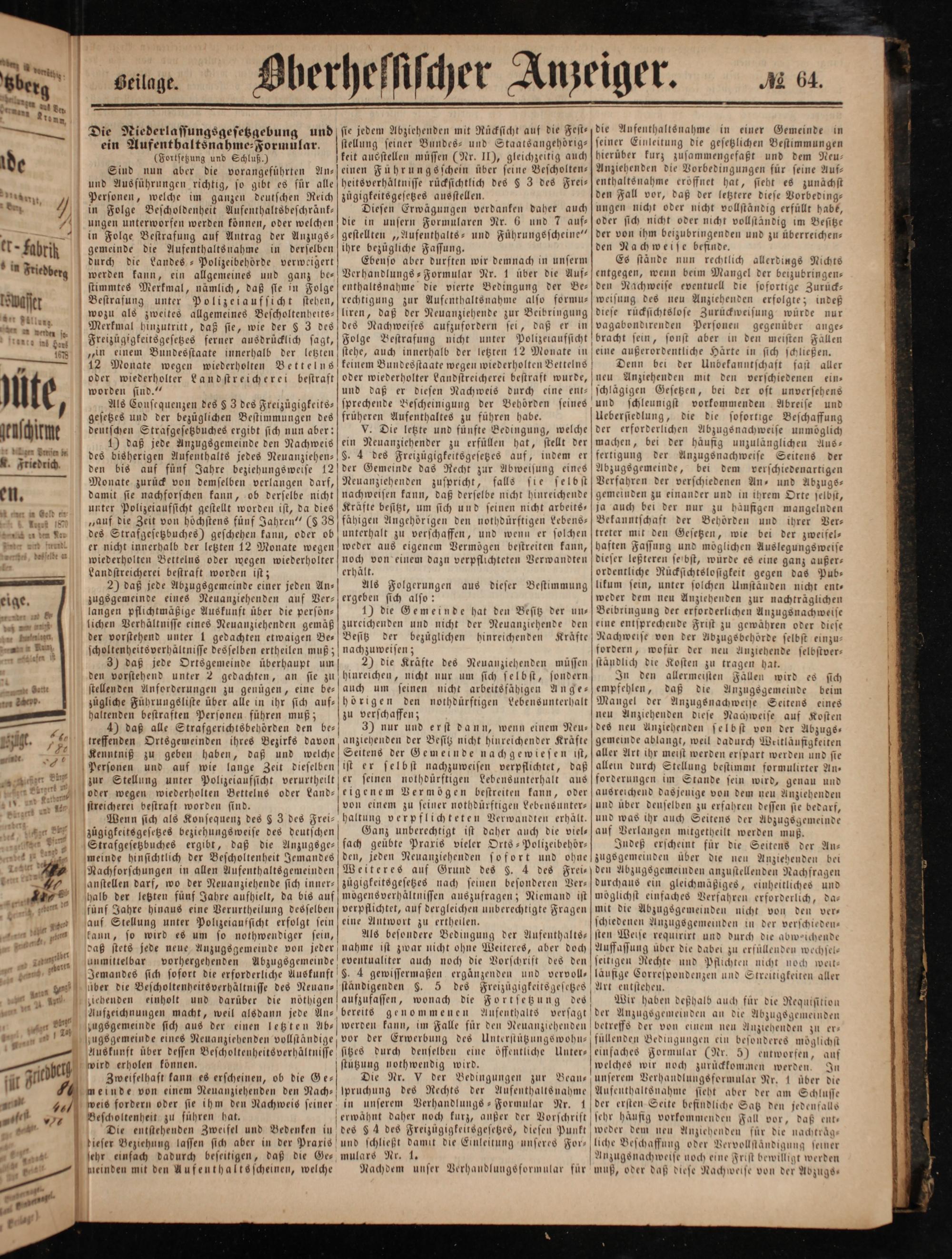 Die Niederlassungsgesetzgebung und ein Aufenthaltsnahme-Formular. (Fortsetzung und Schluß.)