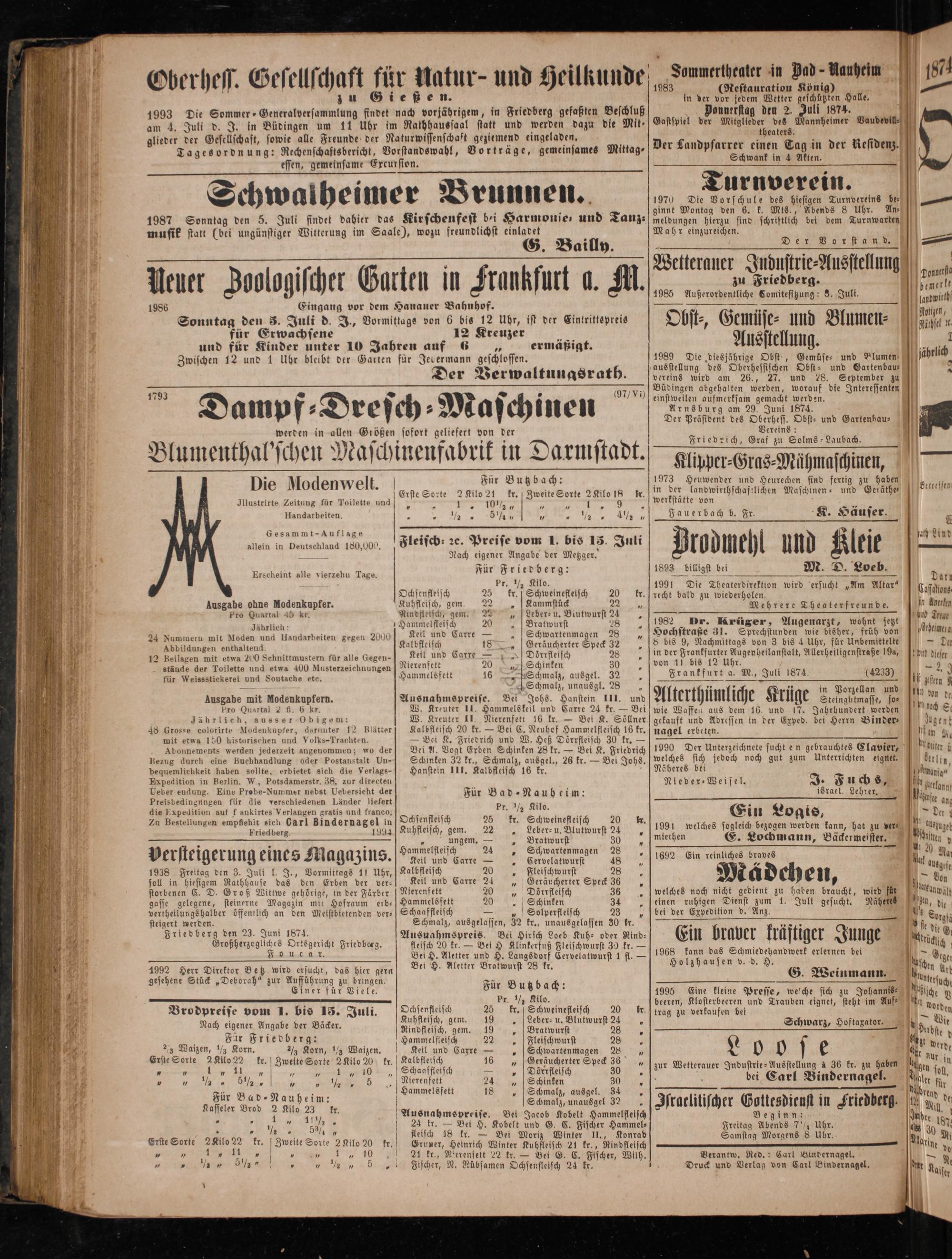 Verantw. Red.: Carl Bindernagel. Druck und Verlag von Carl Bindernagel.