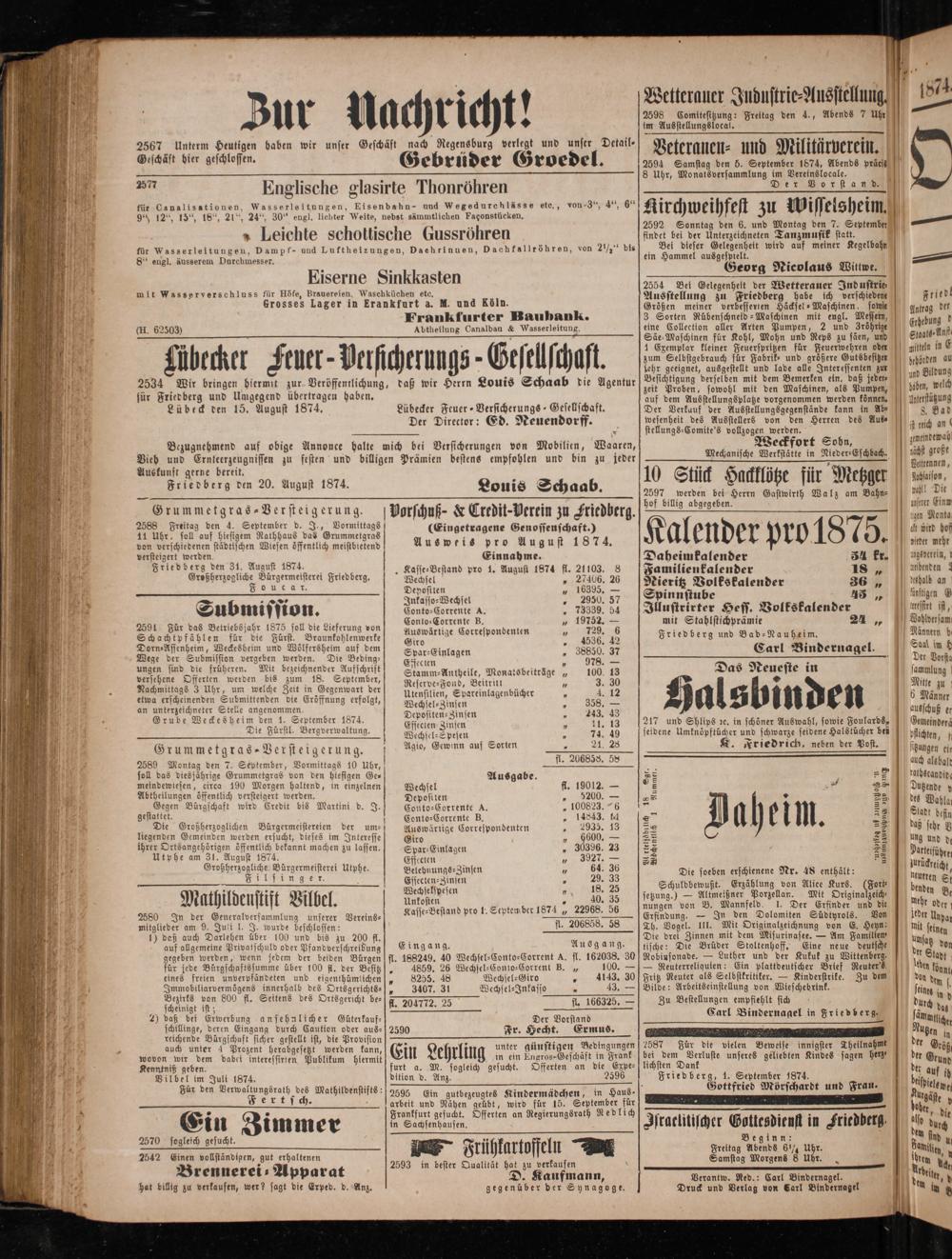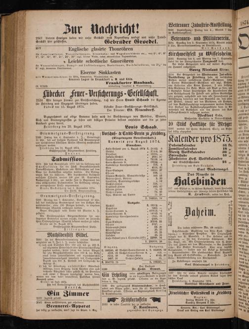 Auskunft gerne bereit. Friedberg den 20. August 1874.