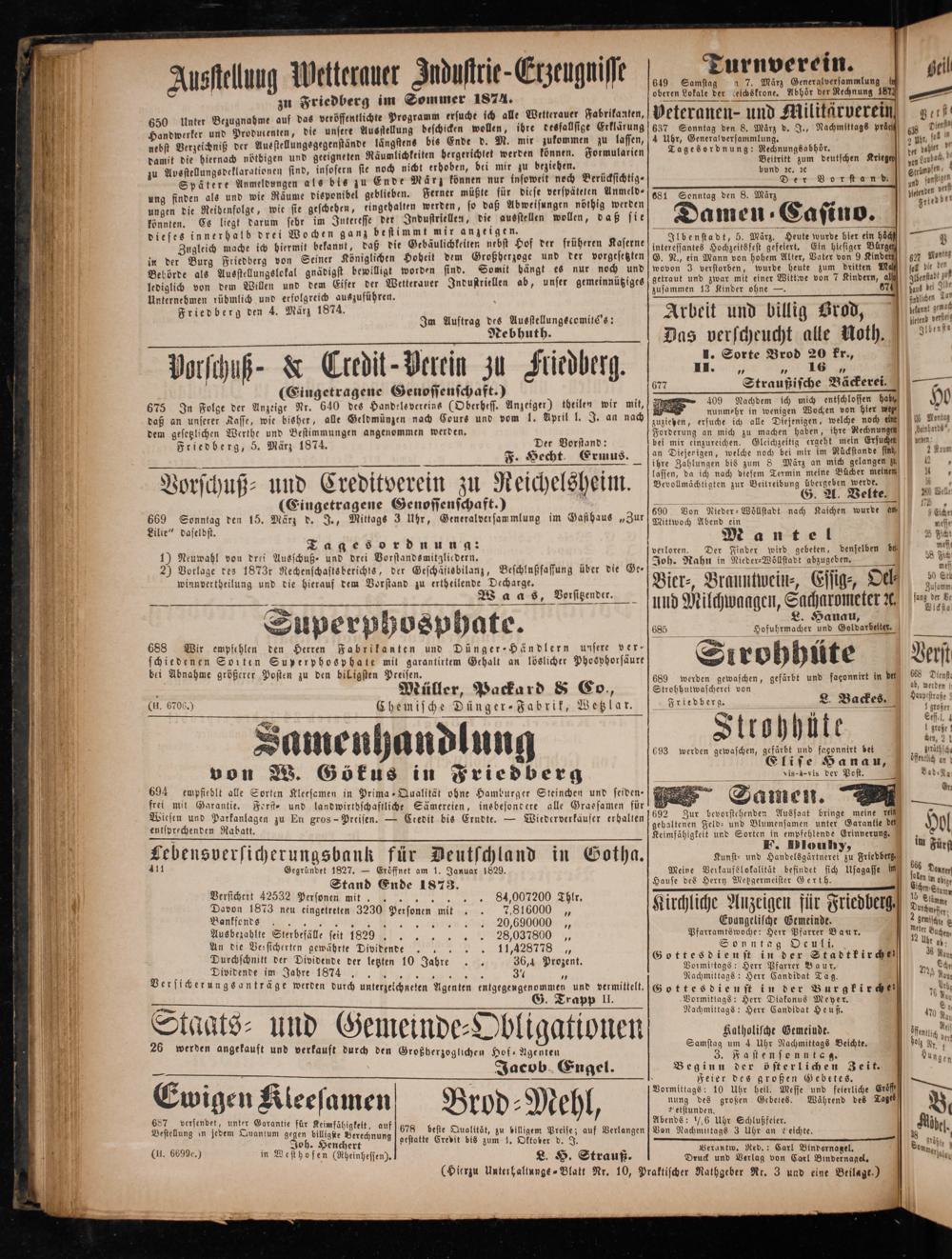 Friedberg den 4. März 1874. Im Auftrag des Ausstellungscomité's: