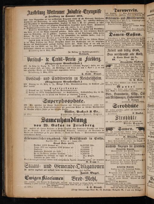 Ausstellung Wetterauer Industrie-Erzeugnisse 6 zu Friedberg im Sommer 1874.