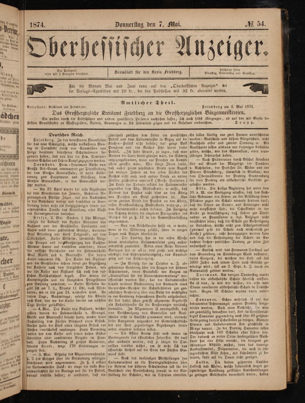 Friedberg am 4. Mai 1874.