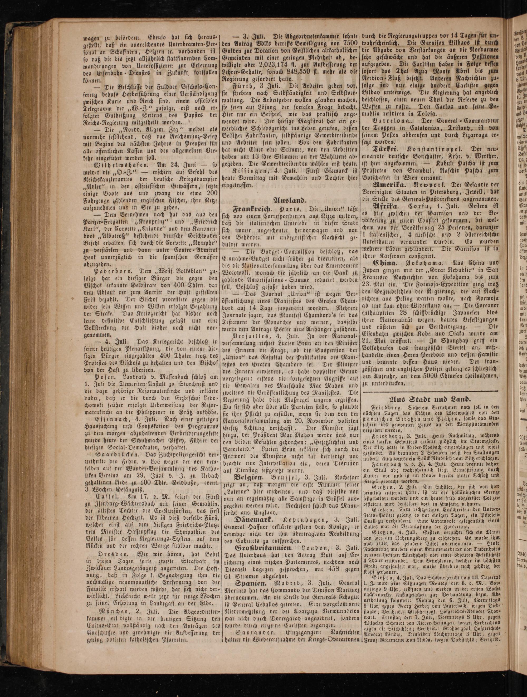 Disraeli dagegen gesprochen, mit 458 gegen 61 Stimmen abgelehnt. Spanien. Madrid, 3. Juli. General