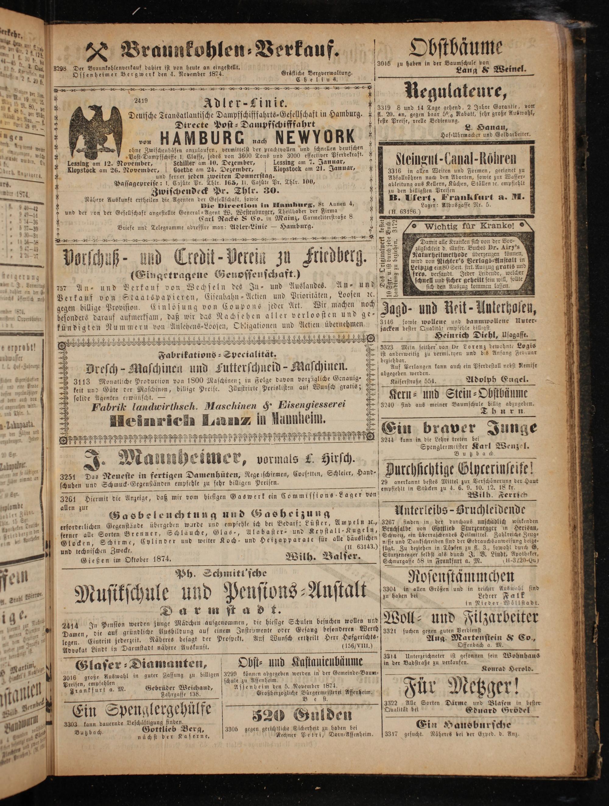 1 empfehlen schule zu Assenheim. a a. M. Gebrüder Weichand, Assenheim den 5. November 1874. Fahrgasse 138.
