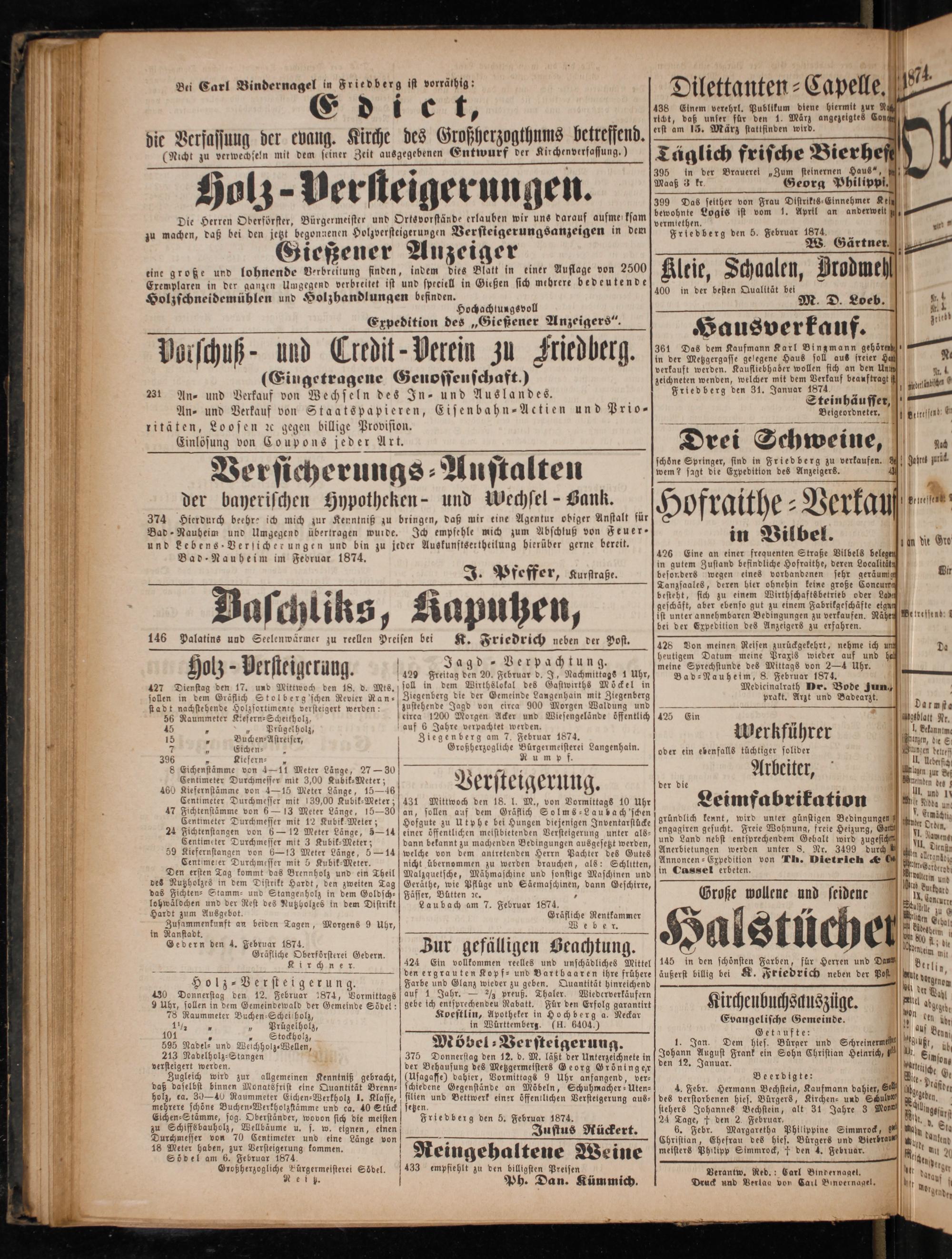 Gedern den 4. Februar 1874.