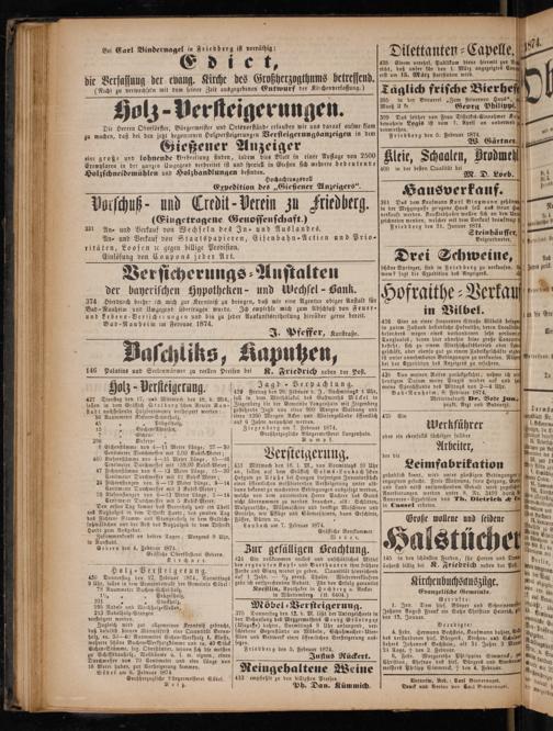 22. Gießener Anzeiger eine große und lohnende Verbreitung finden, indem dies Blatt in einer Auflage von 2500 Exemplaren in der ganzen Umgegend verbreitet ist und speeiell in Gießen sich mehrere bedeutende