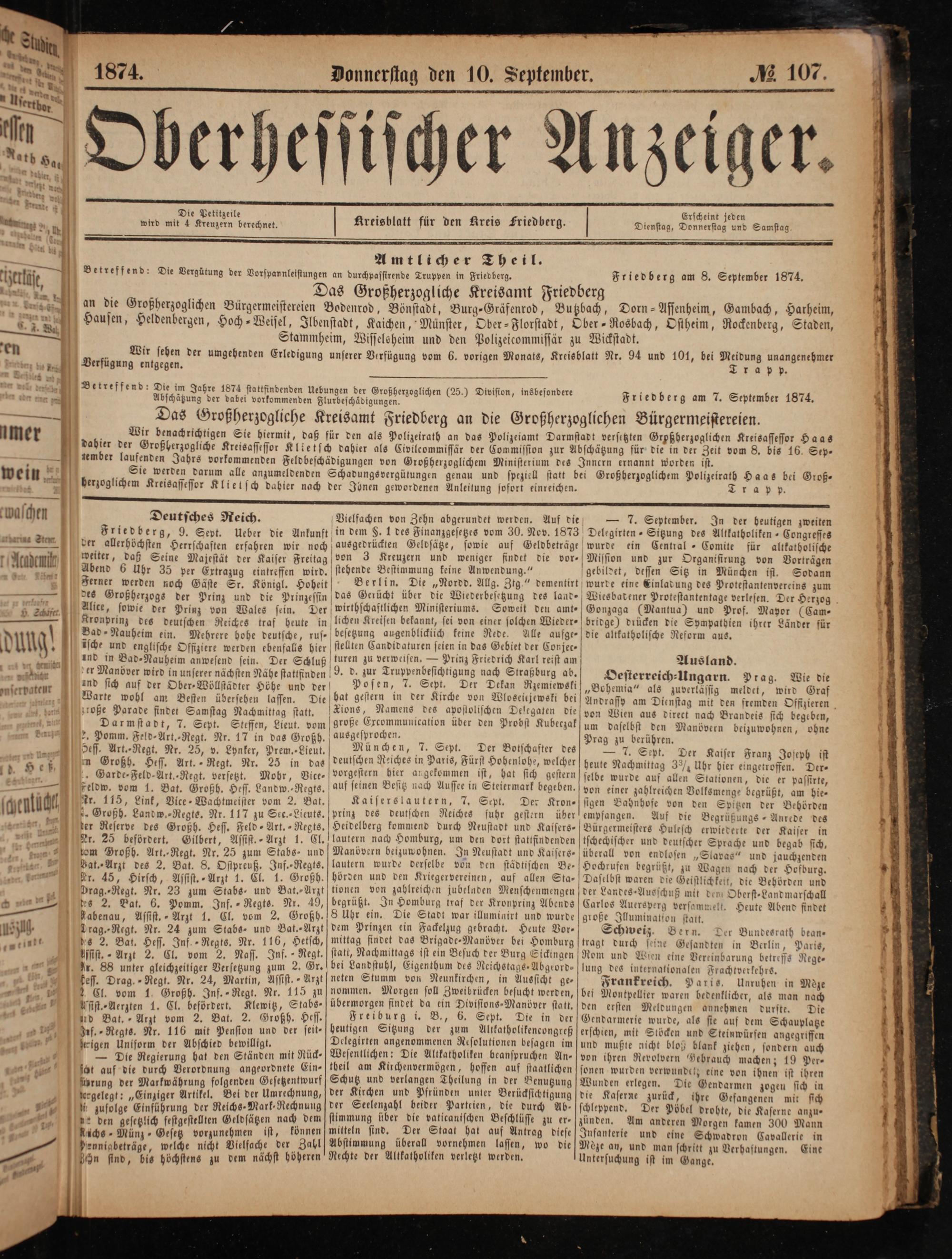 Amtlicher Theil. Betreffend: Die Vergütung der Vorspannleistungen an durchpasstrende Truppen in Friedberg. Das Großherzogliche Kreisamt Friedberg 3