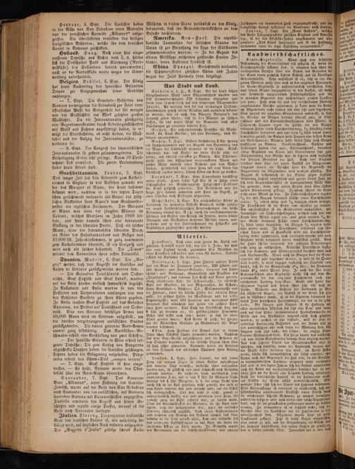 — 8. Sept. Der Congreß der separatistischen der Mauer der Lahnbrücke herunter in die Lahn. Glück. Thüringen hatten eine gute, Süddeutschland, besonders