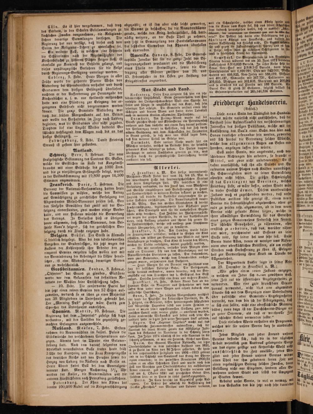 Bonn, 7. Febr. In ftübester Morgenstunde verschied hier heute der Professor der katholischen Theologie, Dr. B. J. Hilgere, ein Gelebrier, dessen hervorragende Fähigkeiten und bürgerliche Tugenden selbst von seinen Feinden—