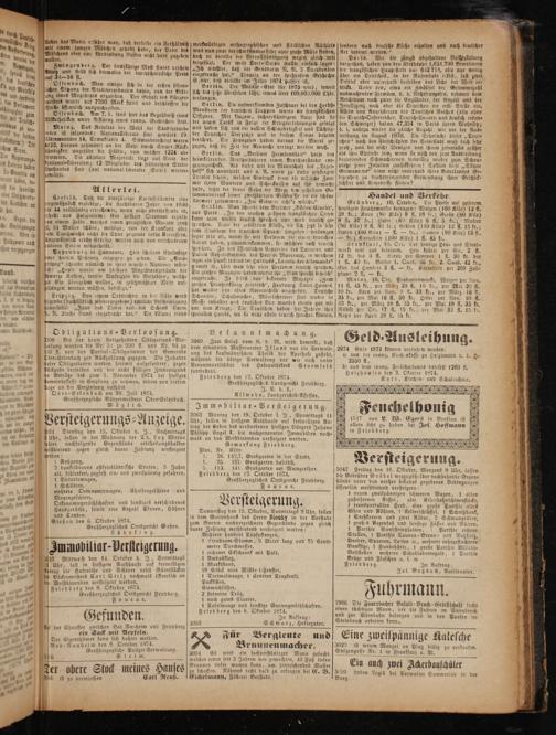 11 Uhr, soll in hiesigem Rathhause auf freiwilligen trag die Hofraithe und Scheuer nebst Güterstücken ie Bäckermeisters Carl Stelz nochmals öffentlich an den Meistbietenden versteigert werden.