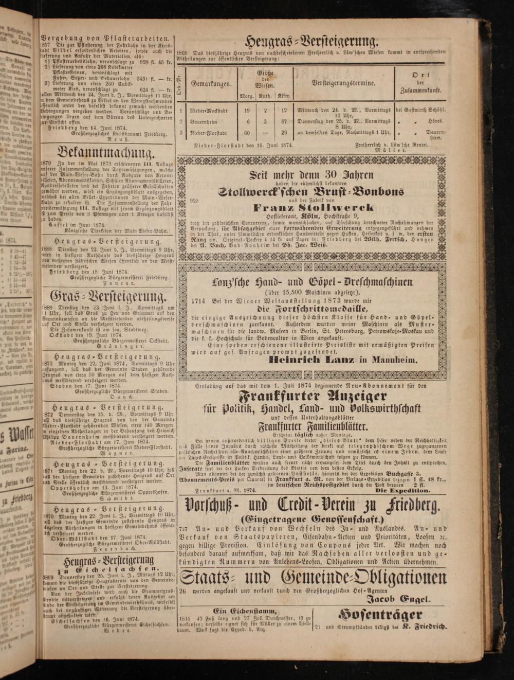 . 2 eee e— S Staden den 17. Juni 1874. Einladung auf das mit dem 1. Juli 1874 beginnende Neu-Abonnement für den Oroßherzogliche Bürgermeisterei Staden. 2 2 7 2 2 Frankfurter Anzeiger Heugras- Versteigerung. für Politik, Handel, Land- und Volkswirthschaft