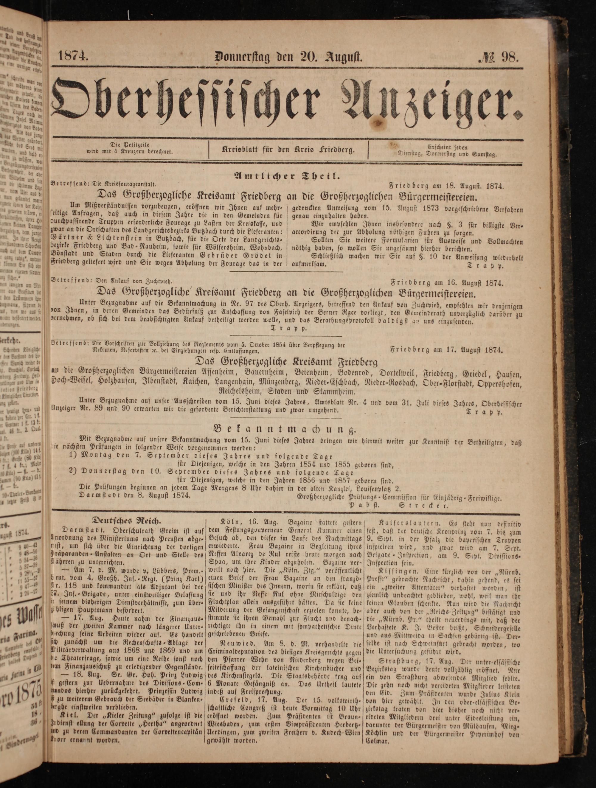 Areisblatt für den Kreis Friedberg.