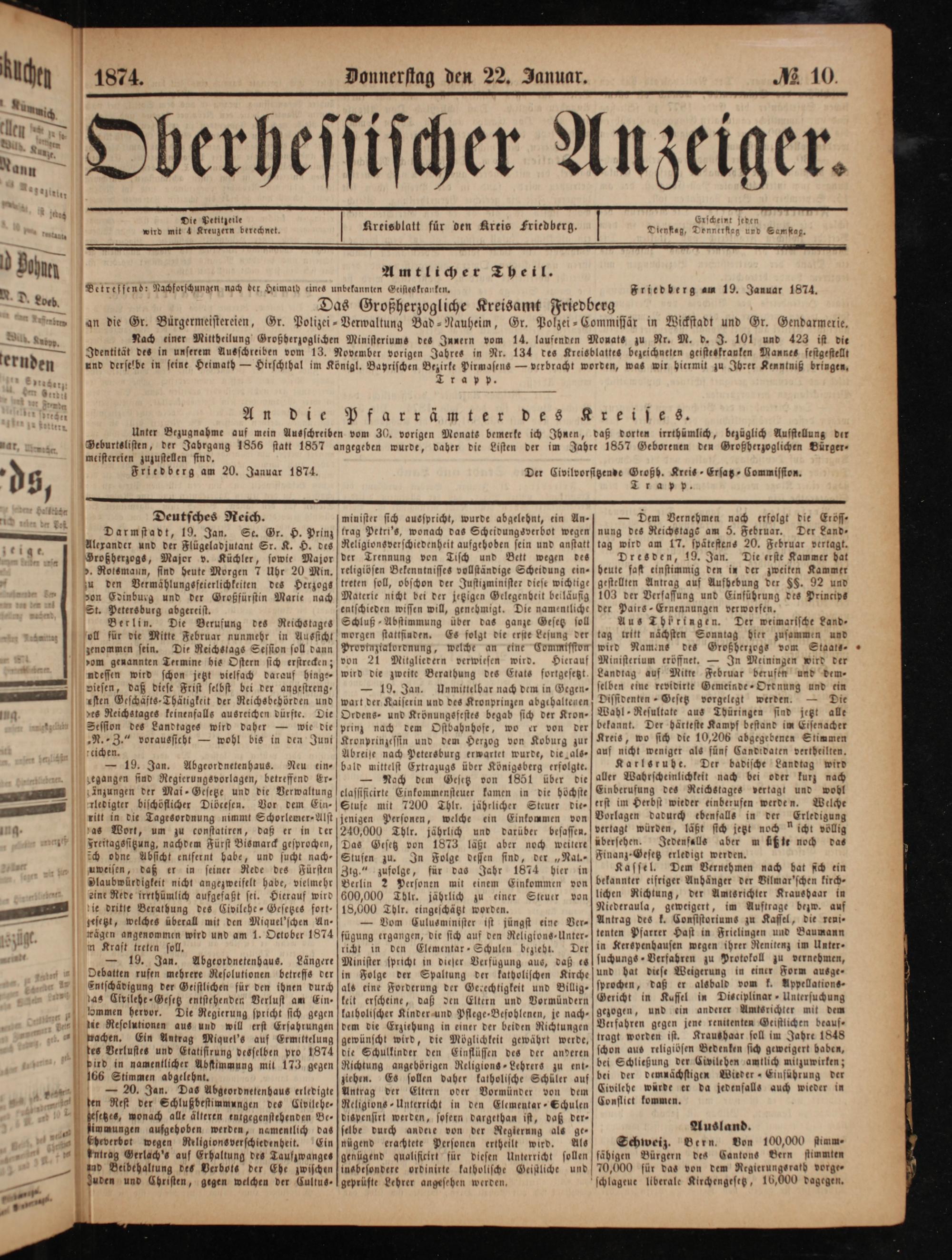 meistertien zuzustellen sind. Friedberg am 20. Januar 1874.
