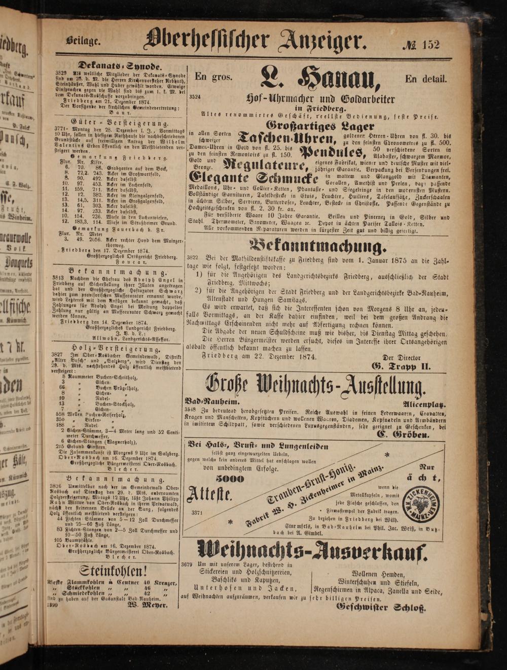 Friedberg den 14. Dezember 1874. Großherzegliches Landgericht Friedberg. V. d. L.;
