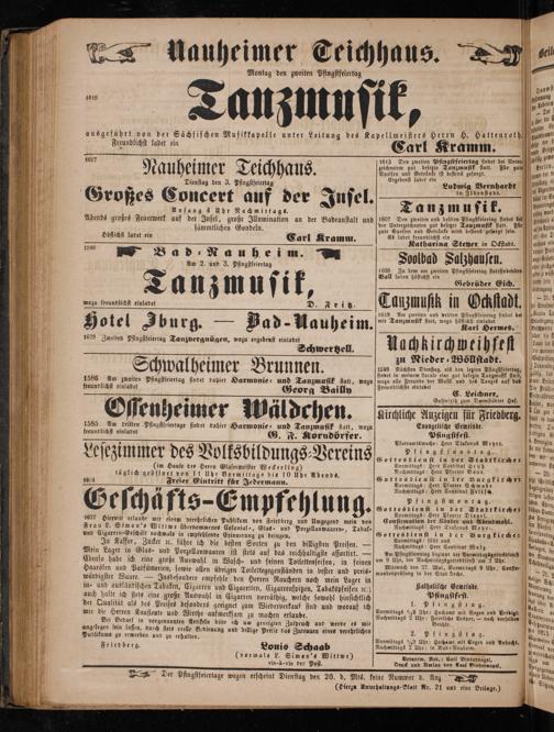 1613 Den zweiten Pfingstfeiertag findet bei Unter zeichnetem gut besetzte Tanzmusik statt. Für gute Speisen und Getränke ist bestens gesorgt. Ergebenst ladet ein 5 Ludwig Bernhardt in Ilbenstadt.