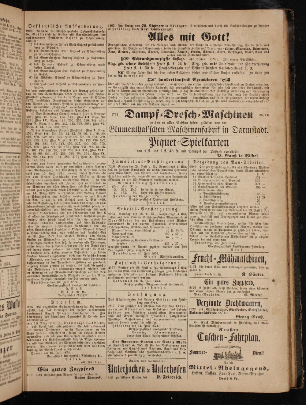 Friedberg den 18. Juli 1874. Großherzogliches Ortsgericht Friedberg. nun.