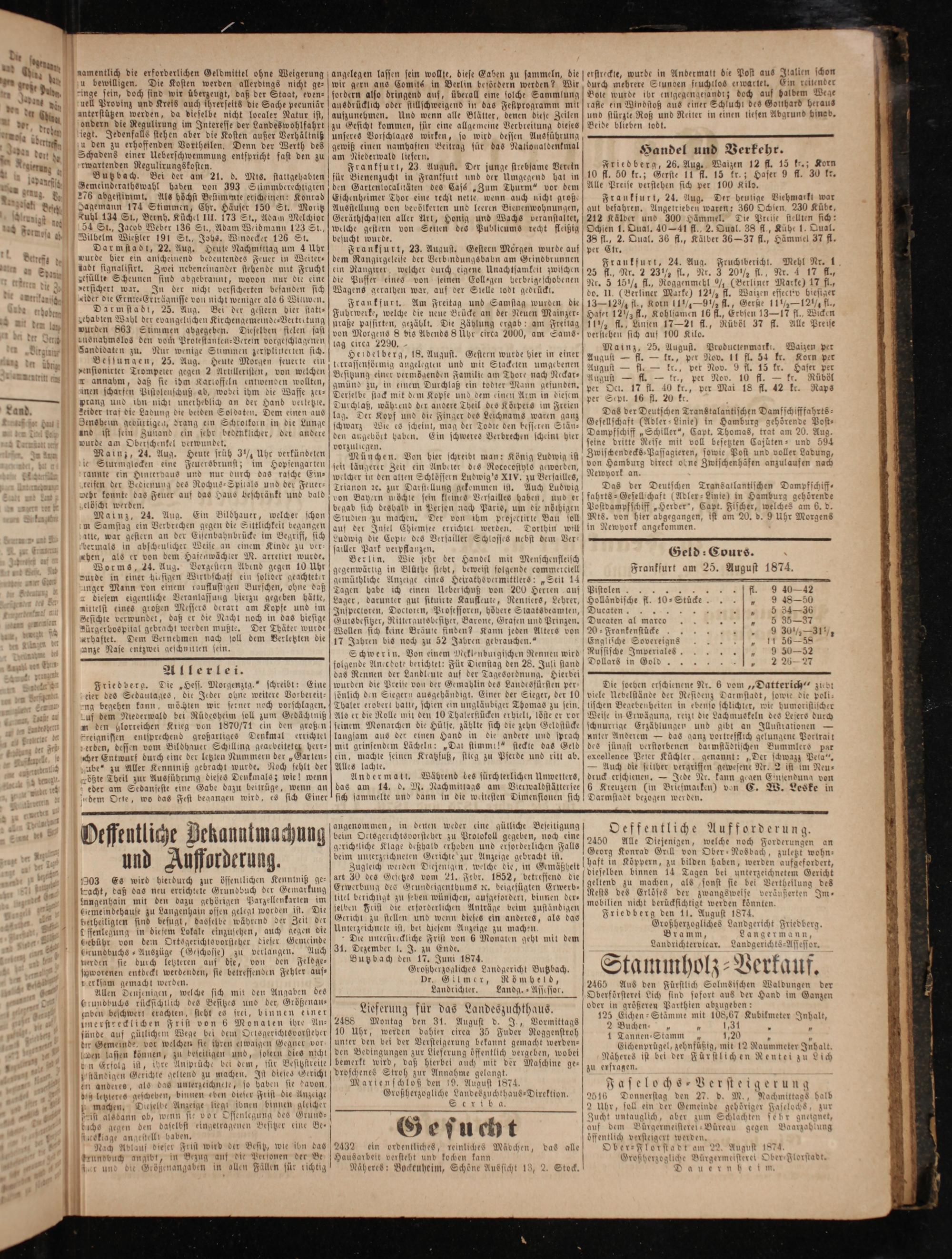Ober⸗Florstadt am 22. August 1874. Großherzogliche Bürgermetsterei Ober Florstadt. ö Dauern heim.