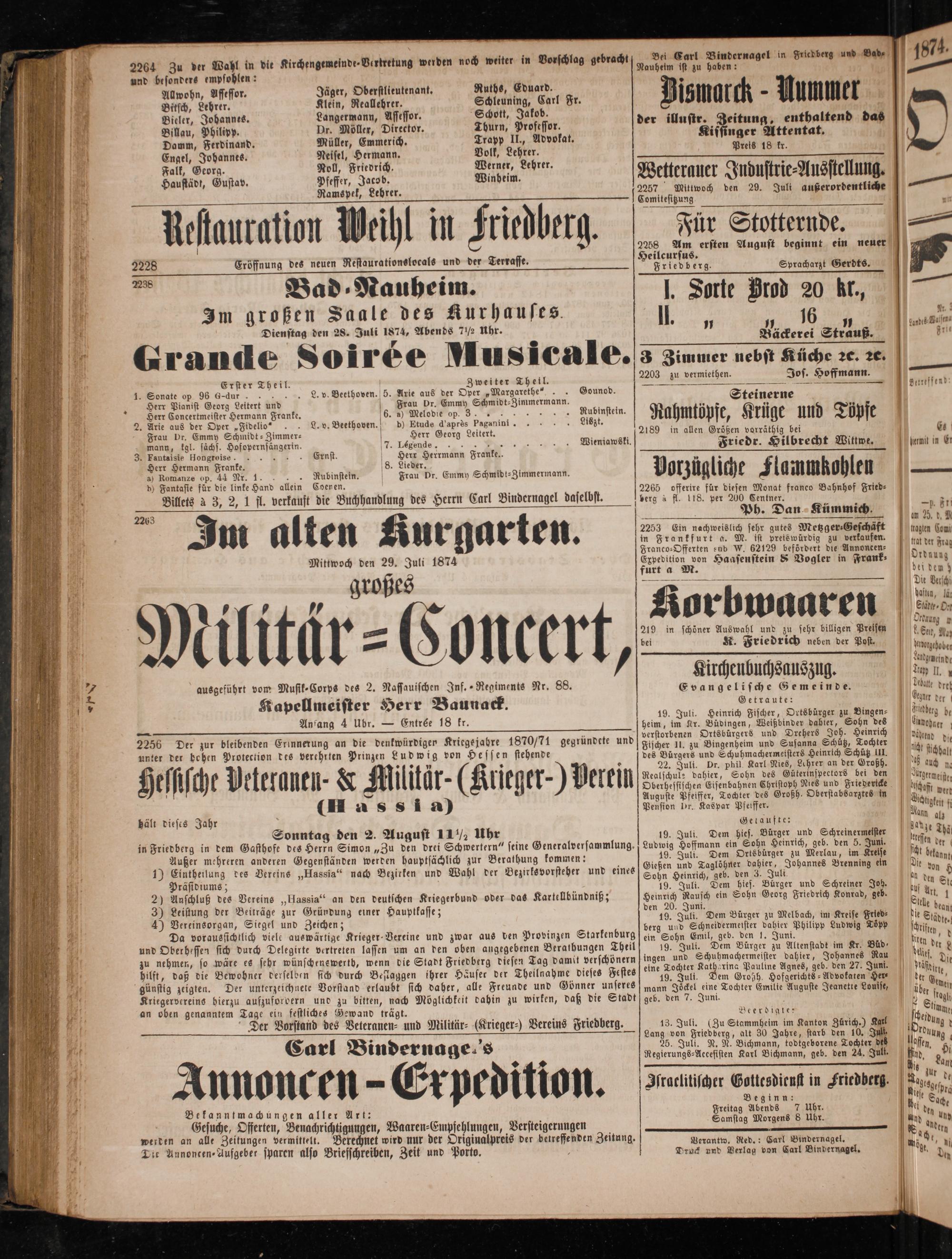 Dienstag den 28. Juli 1874, Abends 7½ Uhr.