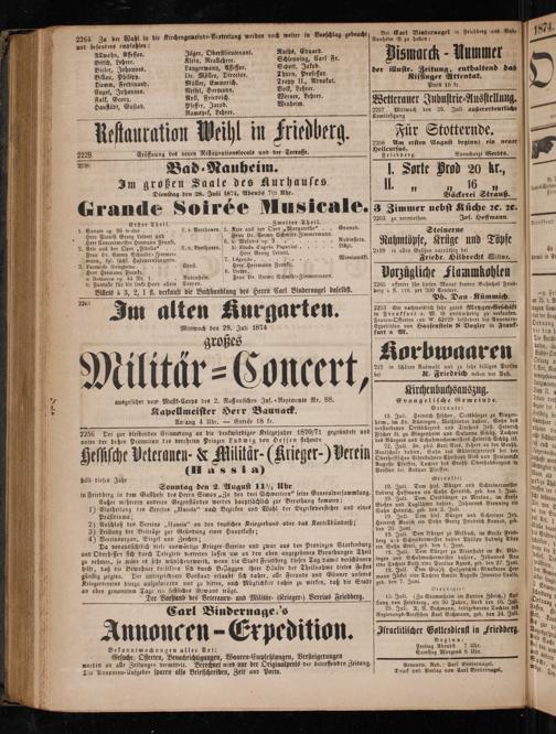 Da voraussichtlich viele auswärtige Krieger-Vereine und zwar aus den Provinzen Starkenburg und Oberhessen sich durch Delegirte vertreten lassen um an den oben angegebenen Berathungen Theil zu nehmen, so wäre es sehr wünschenswertb, wenn die Stadt Friedberg diesen Tag damit verschönern hilft, daß die Bewohner derselben sich durch Beslaggen ihrer Hͤuser der Theilnahme dieses Festes günstig zeigten. Der unterzeichnete Vorstand erlaubt sich daher, alle Freunde und Gönner unseres Kriegervereins hierzu aufzufordern und zu bitten, nach Möglichkeit dahin zu wirken, daß die Stadt an oben genanntem Tage ein festliches Gewand trägt.